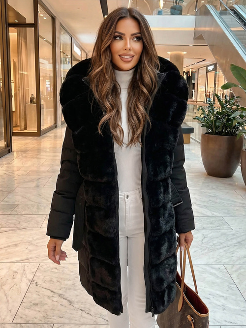 Γυναικείο χειμερινό μπουφάν από γούνα μαύρο OZONEE JS/11Z8250