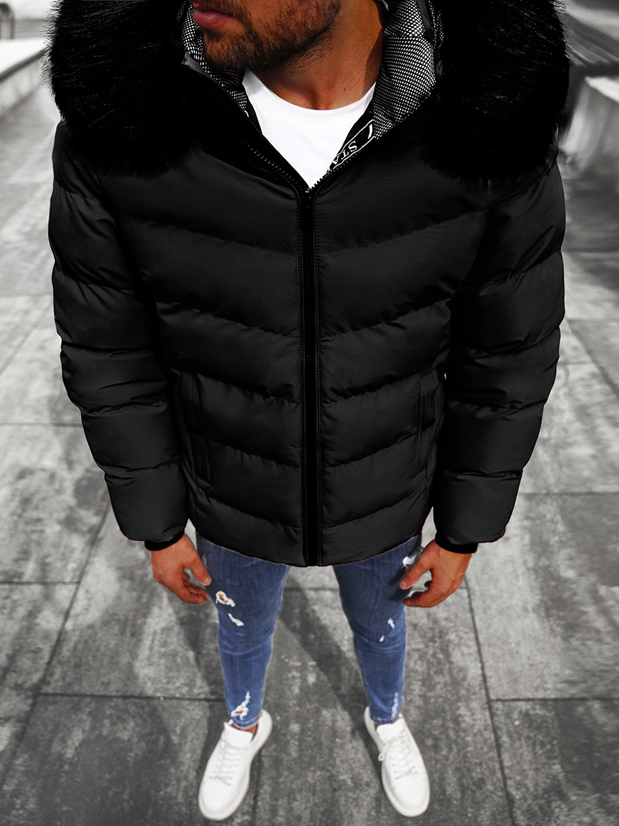 Ανδρικό χειμερινό μπουφάν mαύρος OZONEE JS/M8106