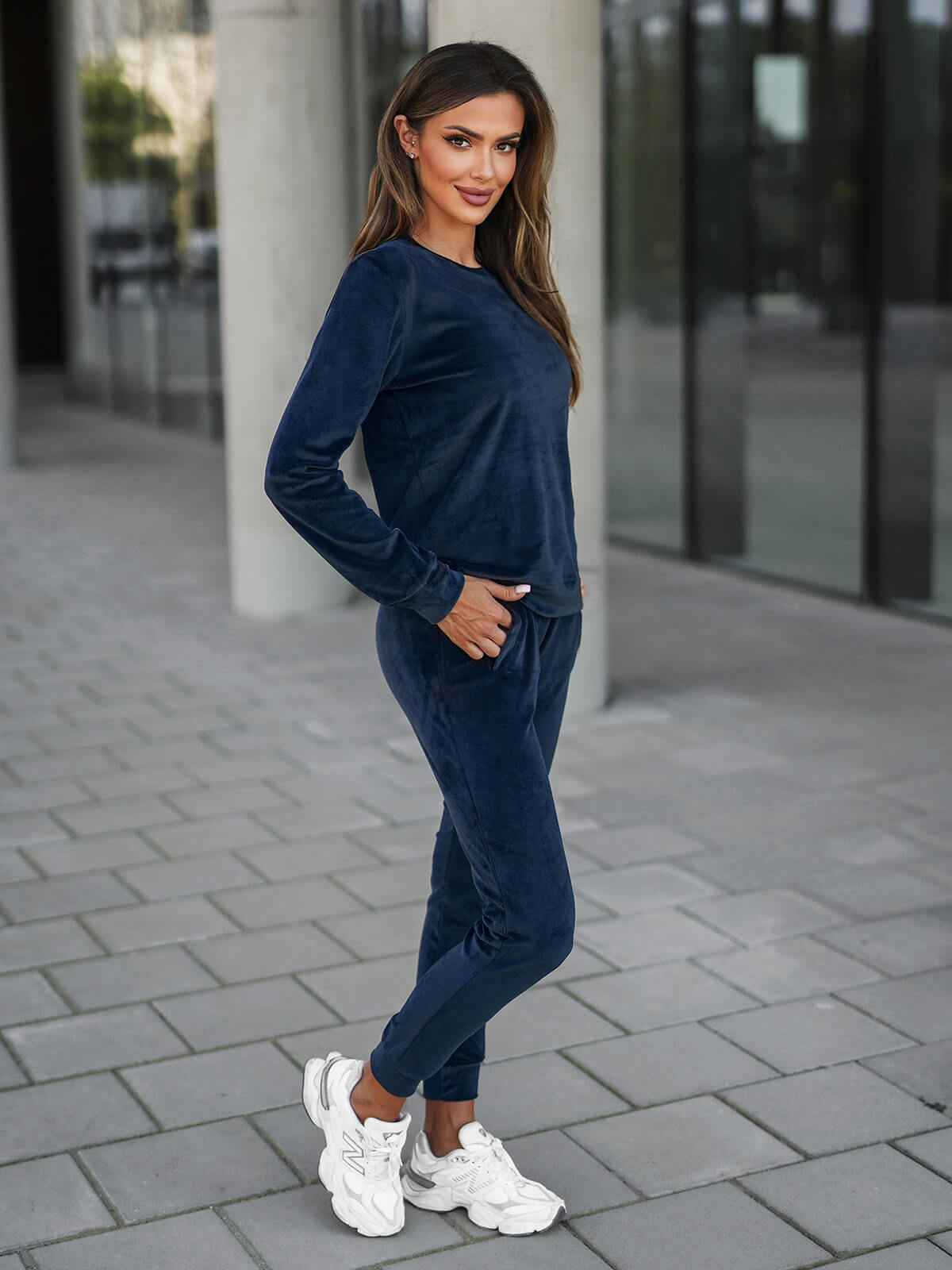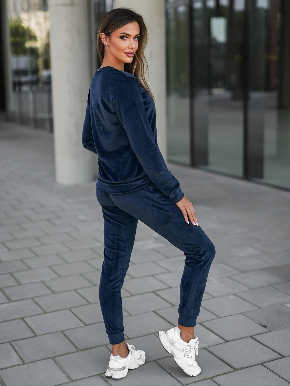 Το μοντέλο της φωτογραφίας έχει ύψος 174 cm και φοράει το μέγεθος M. Αυτό το σετ φόρμας είναι ιδανικό για τις γυναίκες που εκτιμούν την άνεση και το στυλ σε ένα. Όποια κι αν είναι η περίσταση, αυτό το βελούδινο σετ φόρμας θα αποτελέσει μια εξαιρετική επιλογή.