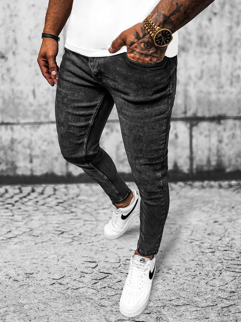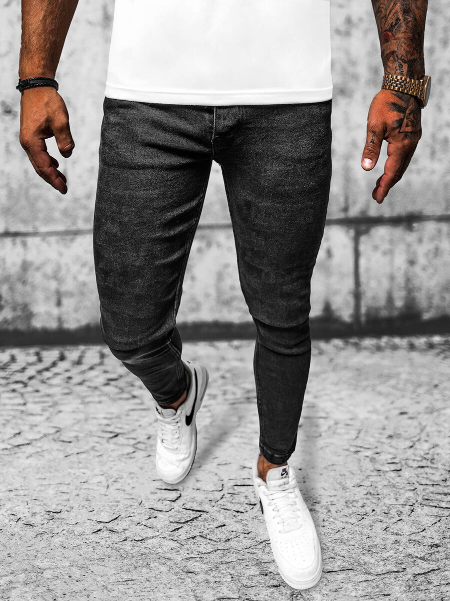 Ανδρικό τζιν παντελόνι mαύρος OZONEE E/6540/01