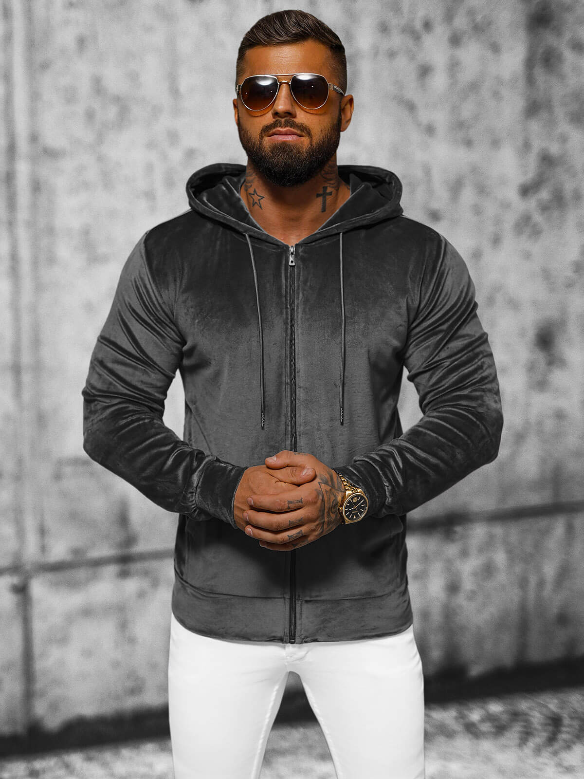 Το ανδρικό φούτερ OZONEE JS/8B1168/6 με κουκούλα από βελούδο σε γραφίτη είναι μια τέλεια επιλογή για την καθημερινότητα, το σχολείο, την προπόνηση ή τη συνάντηση με φίλους. Μπορεί να συνδυαστεί με διάφορα είδη ένδυσης, όπως τζιν, αθλητικά παντελόνια ή κοντά σορτς. Χάρη στο καθολικό της χρώμα και το κλασικό της κόψιμο, ταιριάζει σε πολλά σύνολα. Πρόκειται για ένα προϊόν που σίγουρα αξίζει μια θέση στην γκαρνταρόμπα κάθε άνδρα.