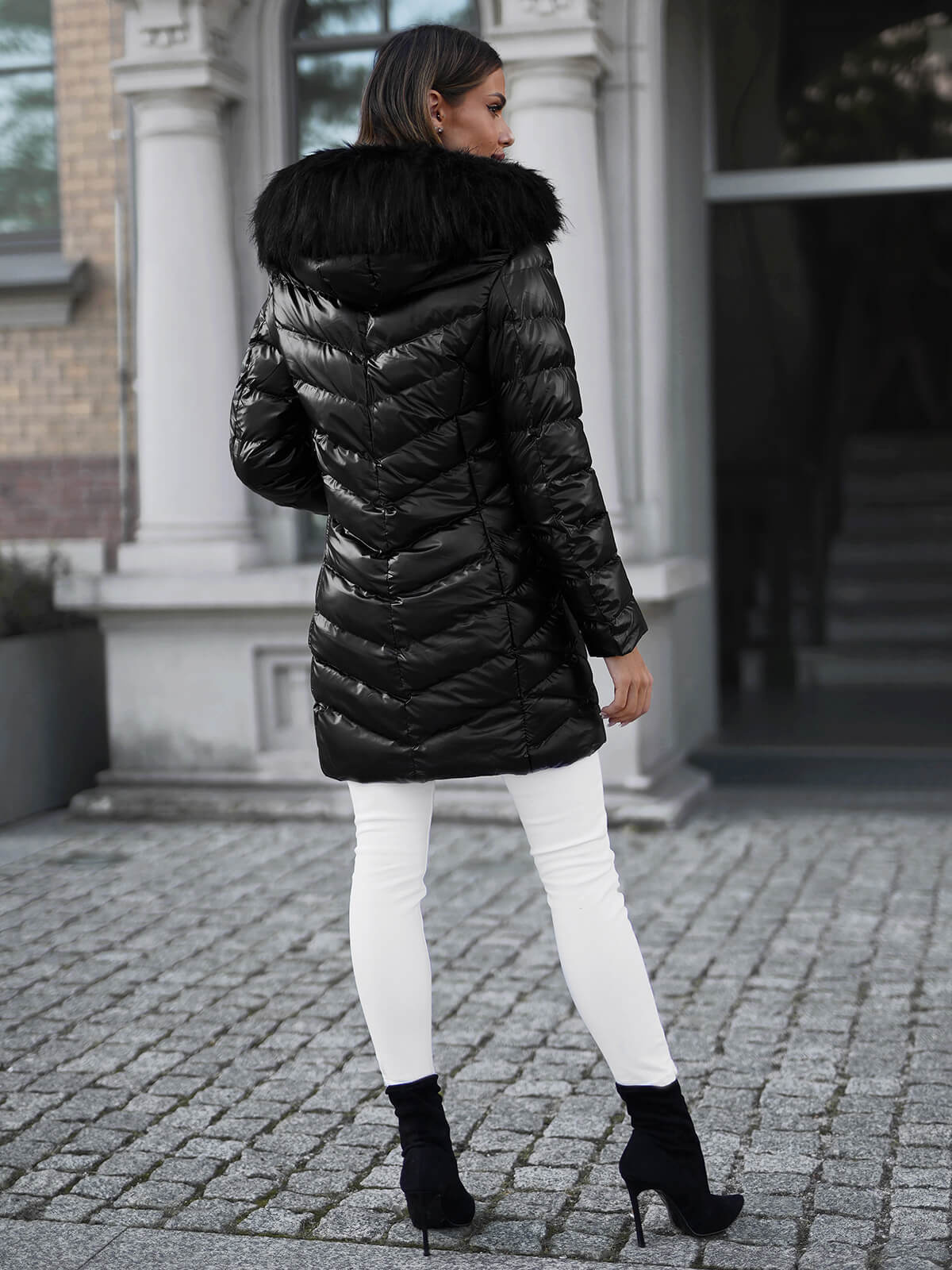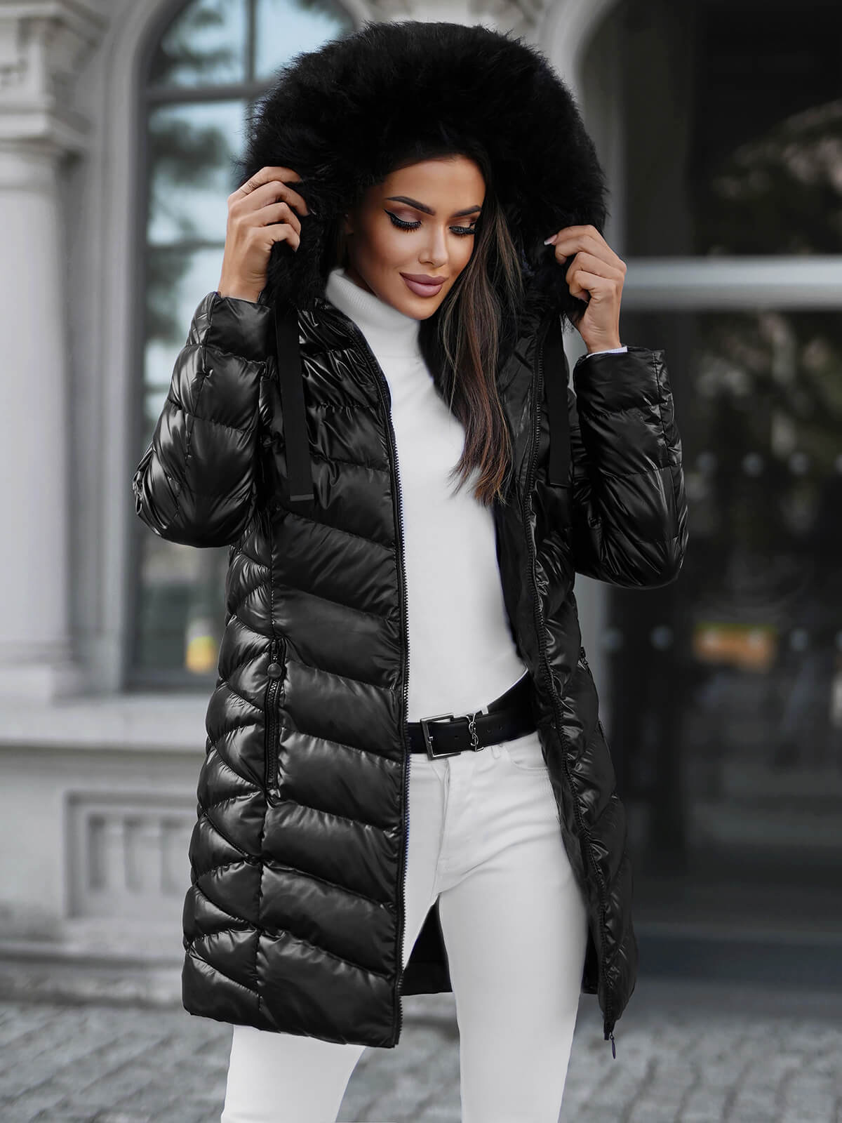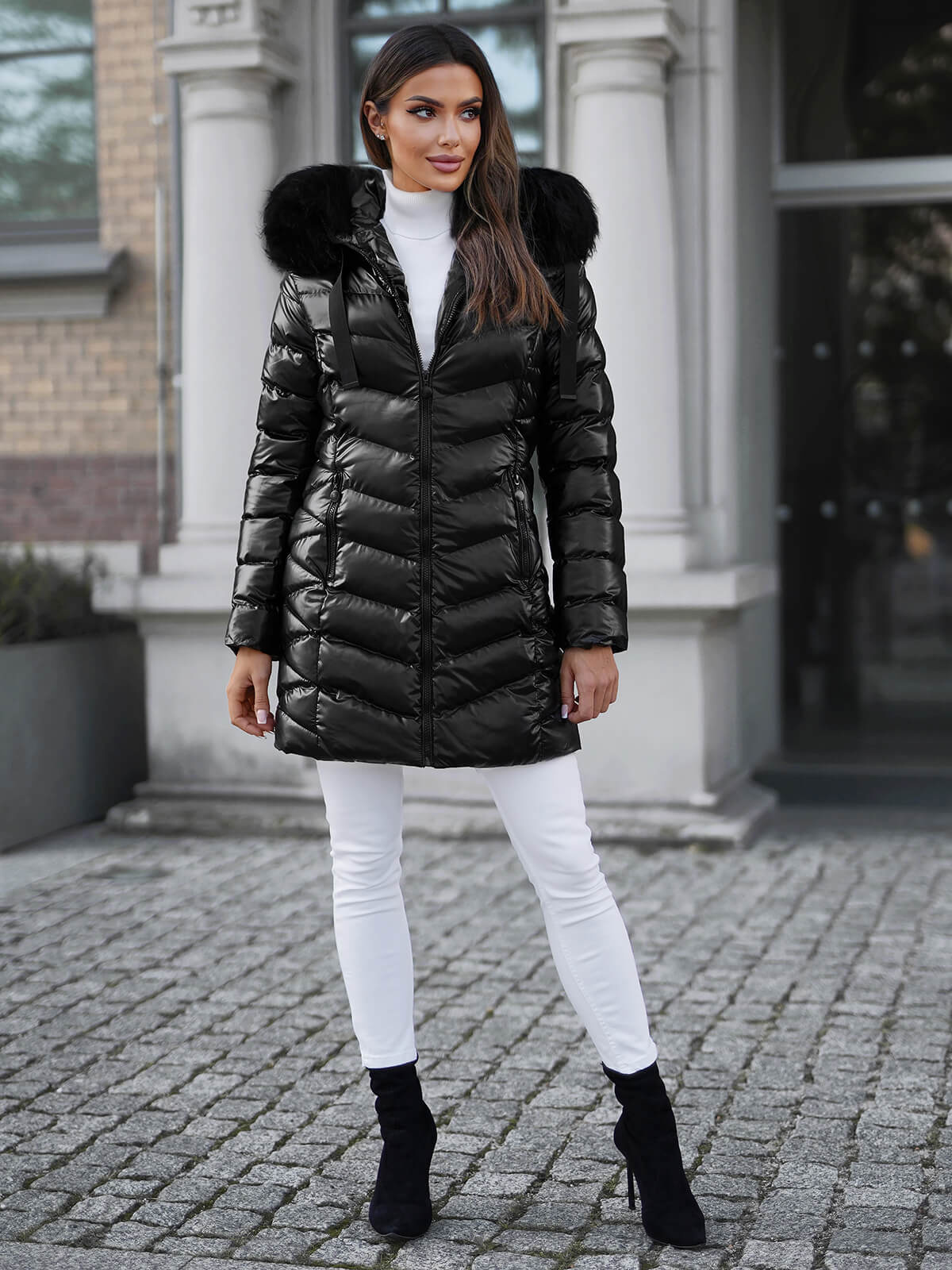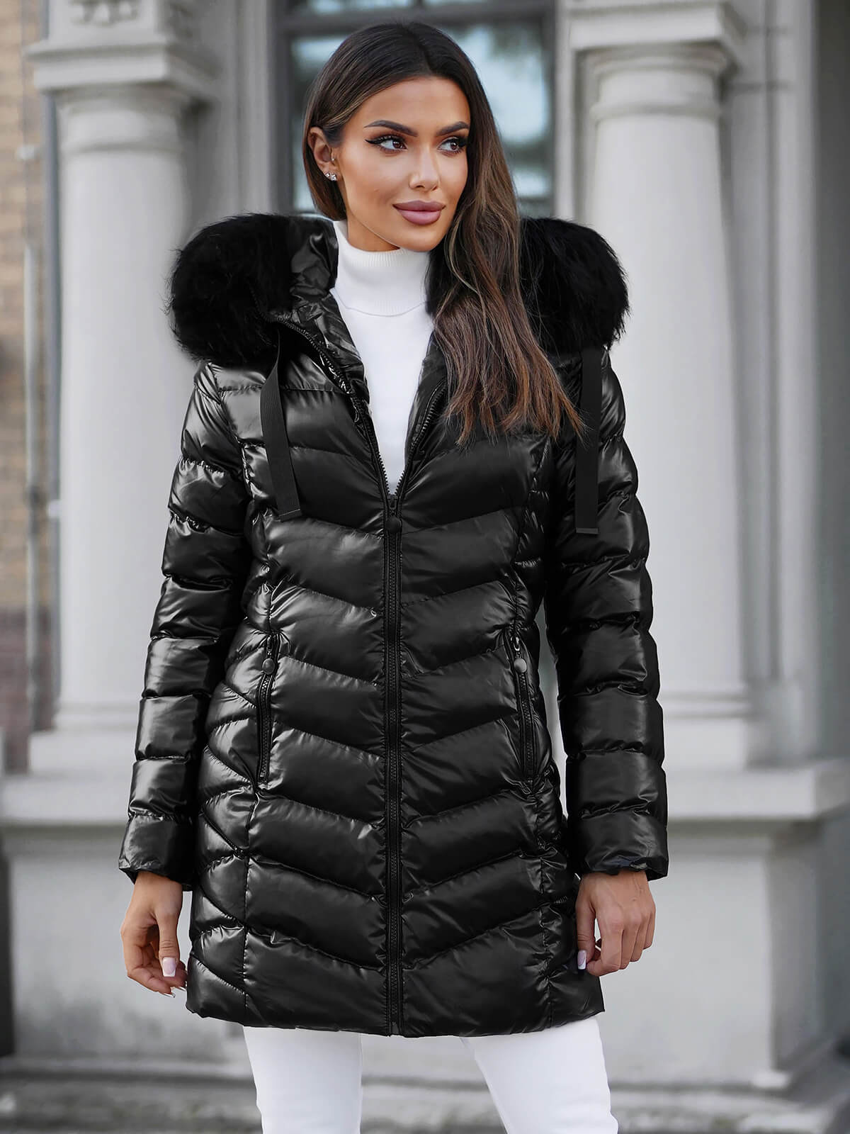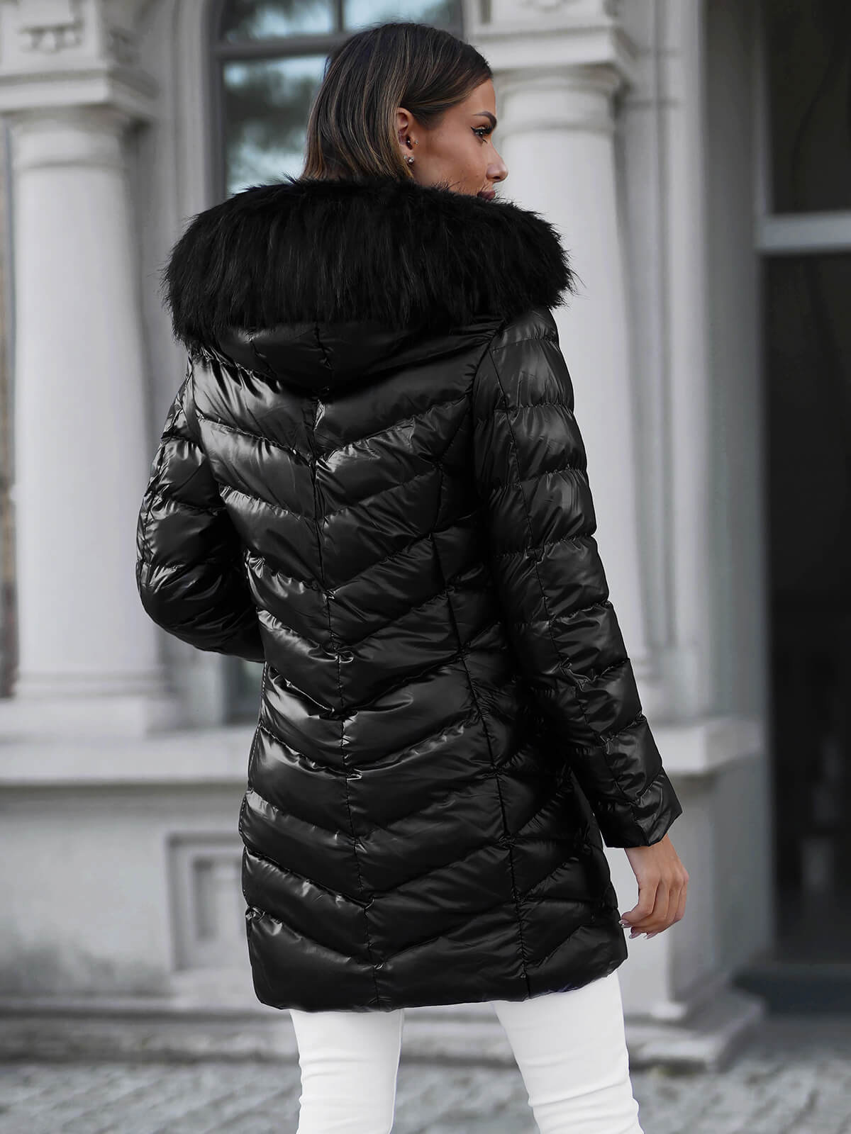 Κομψό και πρακτικό γυναικείο χειμερινό μπουφάν με γούνα OZONEE JS/M778/392BZ