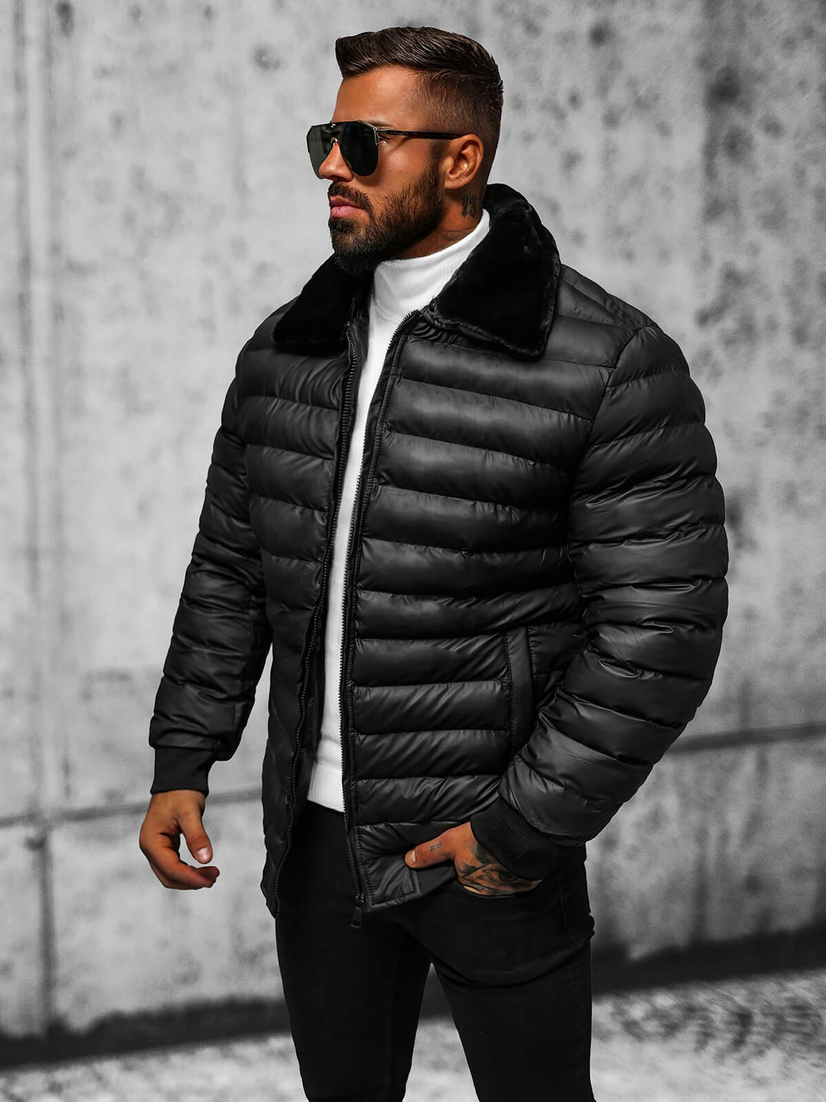 Μοντέρνα κομψότητα με αστικό στυλ - Ανδρικό καπιτονέ μπουφάν μαύρο OZONEE JS/31M5012