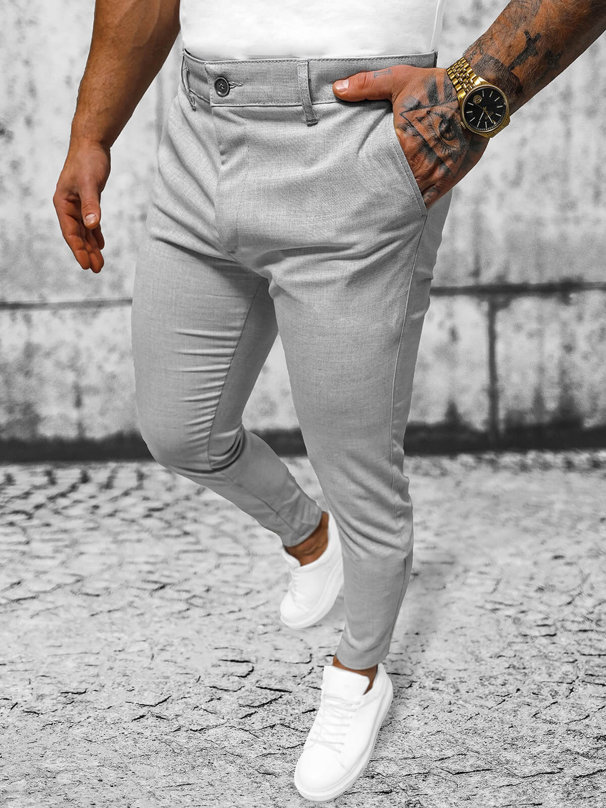 Ανδρικό παντελόνι chino υλικόow grey OZONEE O/4000 - ένα κλασικό σε μοντέρνα έκδοση