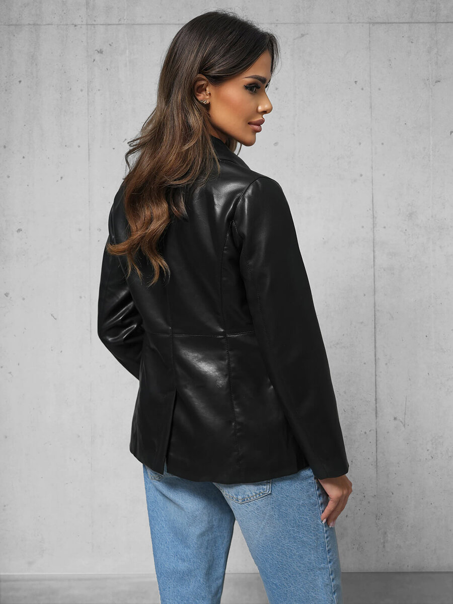 Γυναικείο δερμάτινο μπουφάν μαύρο OZONEE JS/11Z8121 - η κομψότητα συναντά την άνεση