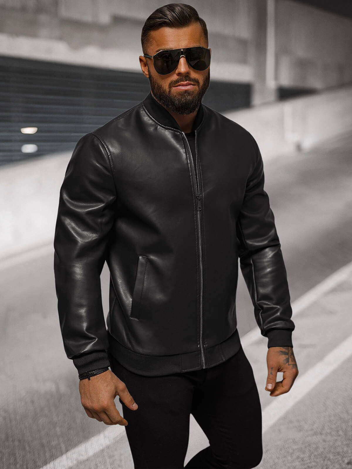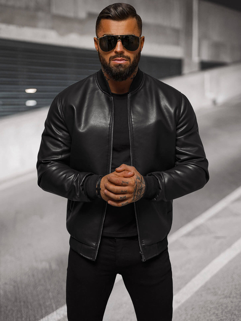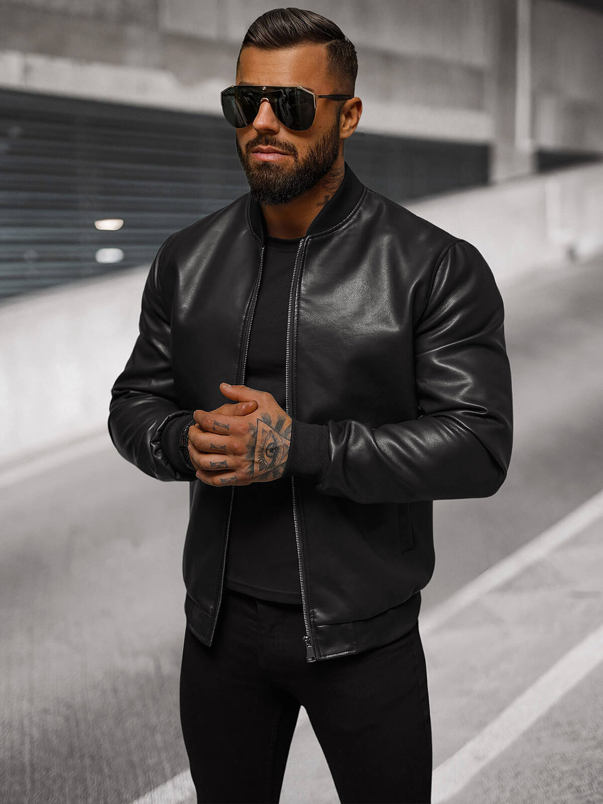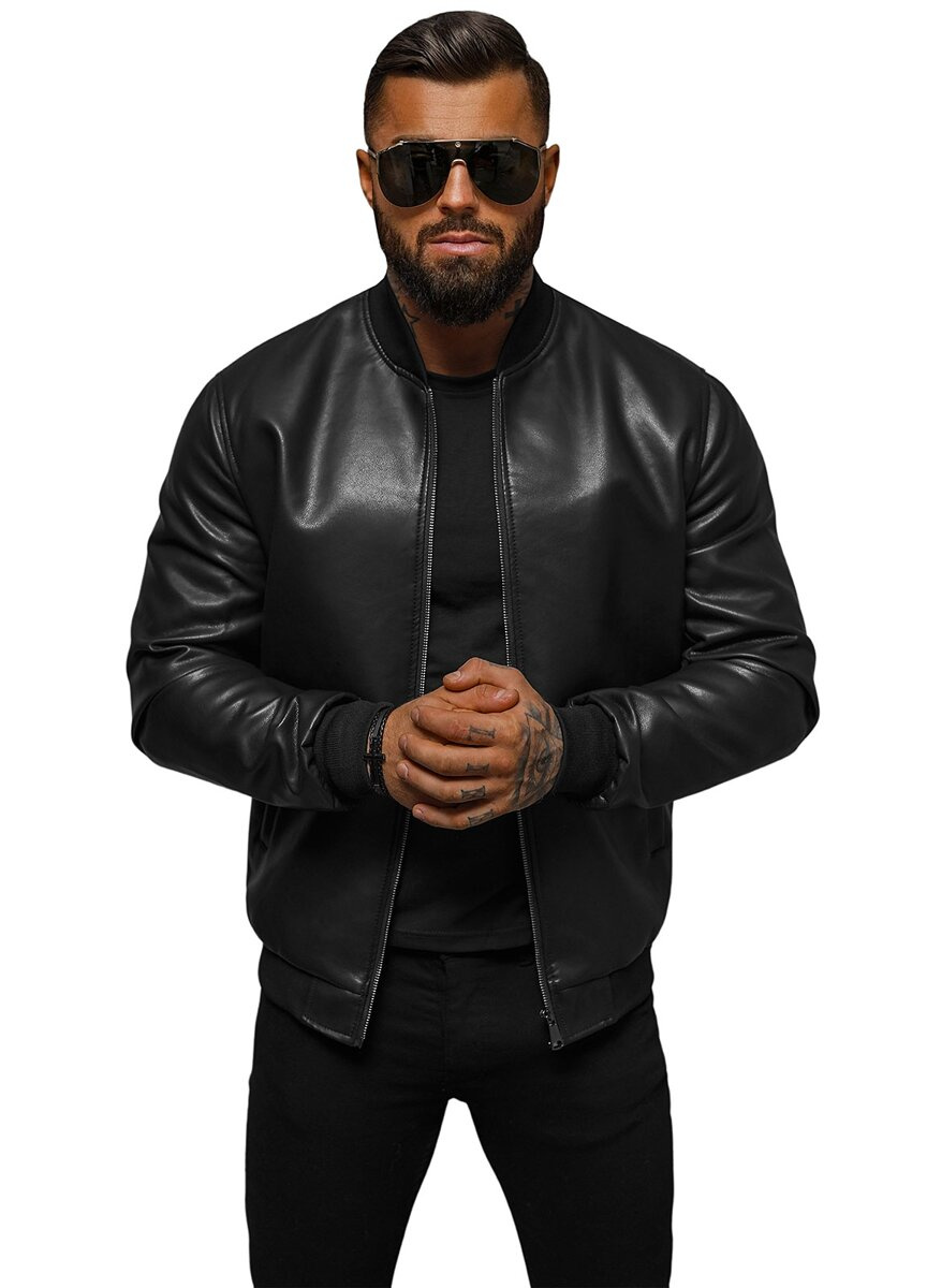 Ανδρικό δερμάτινο μπουφάν μαύρο OZONEE O/88120