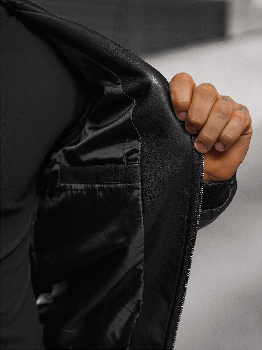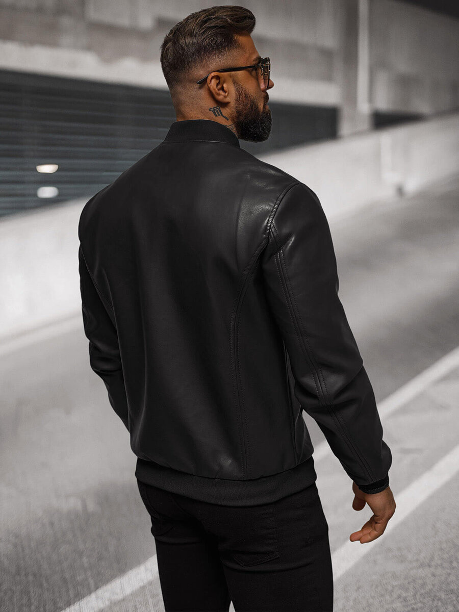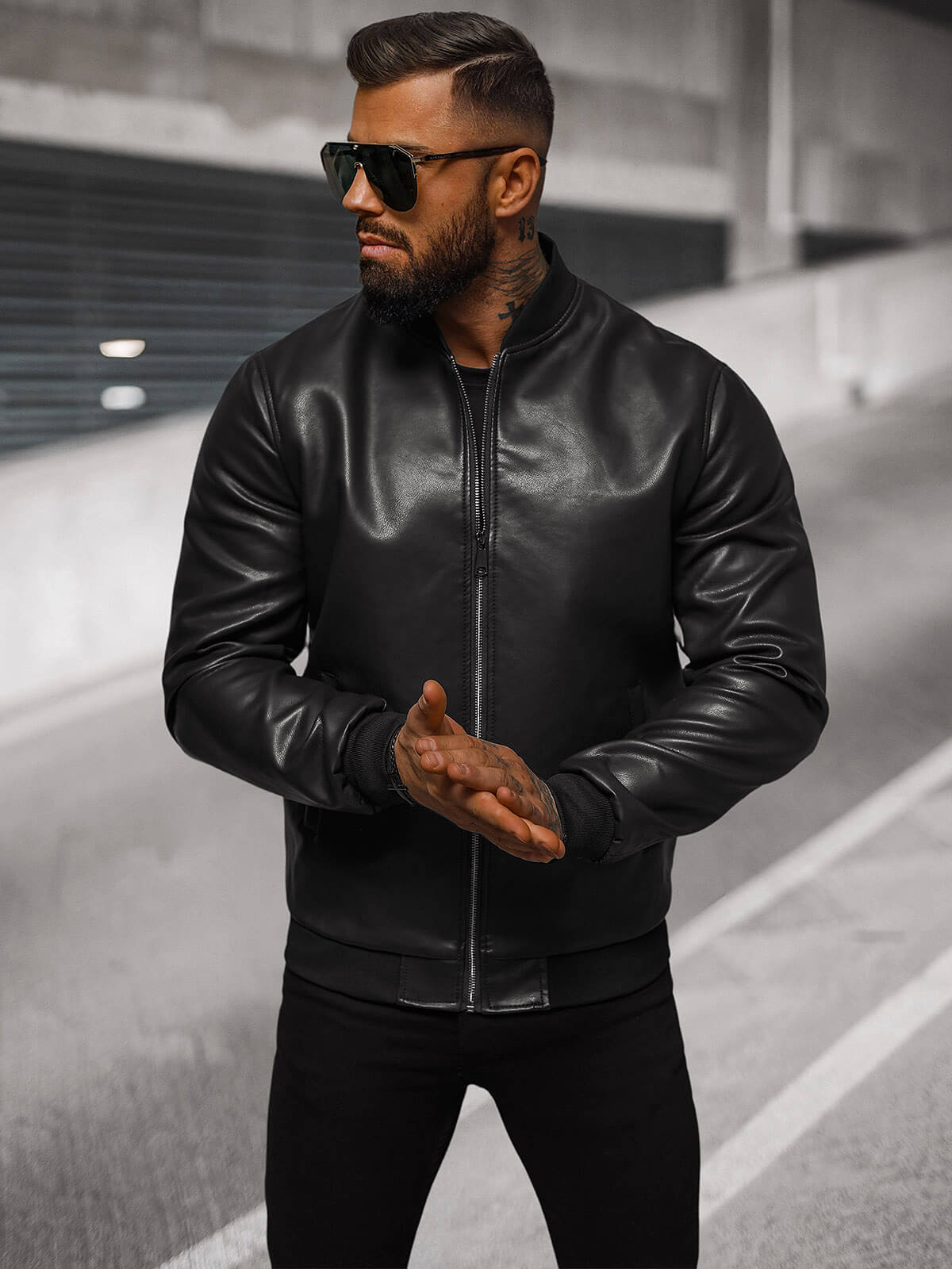 Ανδρικό δερμάτινο μπουφάν μαύρο OZONEE O/88120