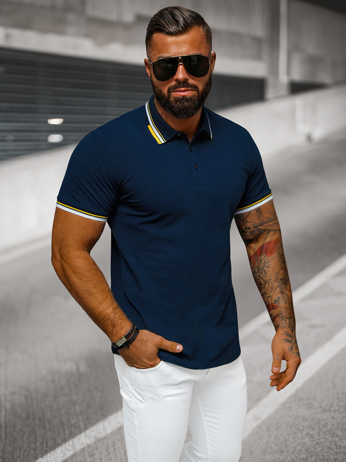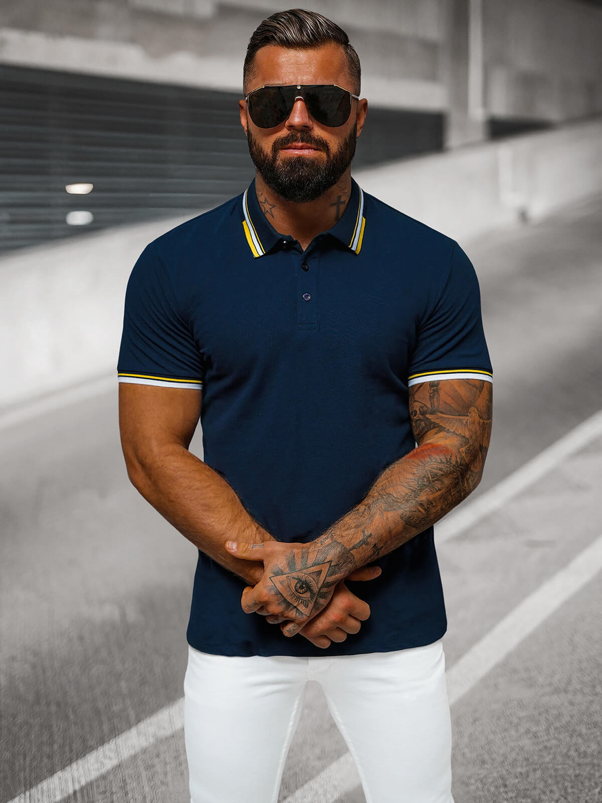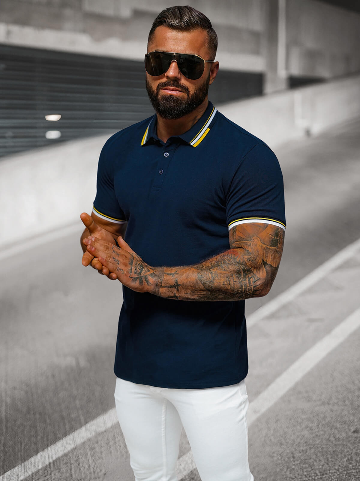 Κομψό και άνετο ανδρικό μπλε μπλουζάκι πόλο OZONEE O/DA736