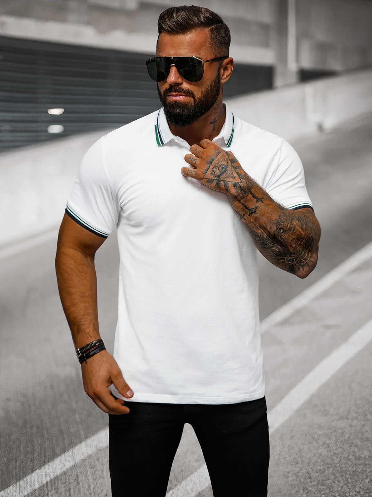 Κομψότητα και άνεση σε ένα - OZONEE ανδρικό λευκό πουκάμισο πόλο O/DA736