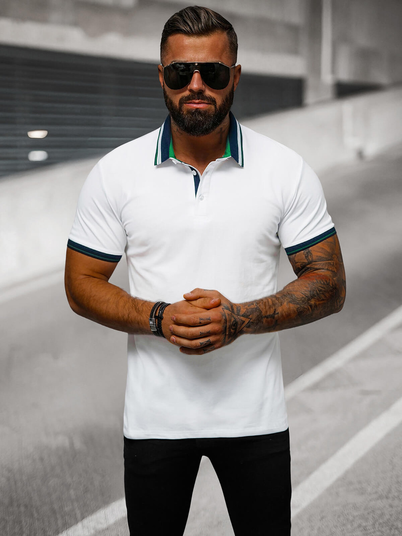Κομψότητα και άνεση σε ένα - OZONEE ανδρικό λευκό πουκάμισο πόλο O/DA736