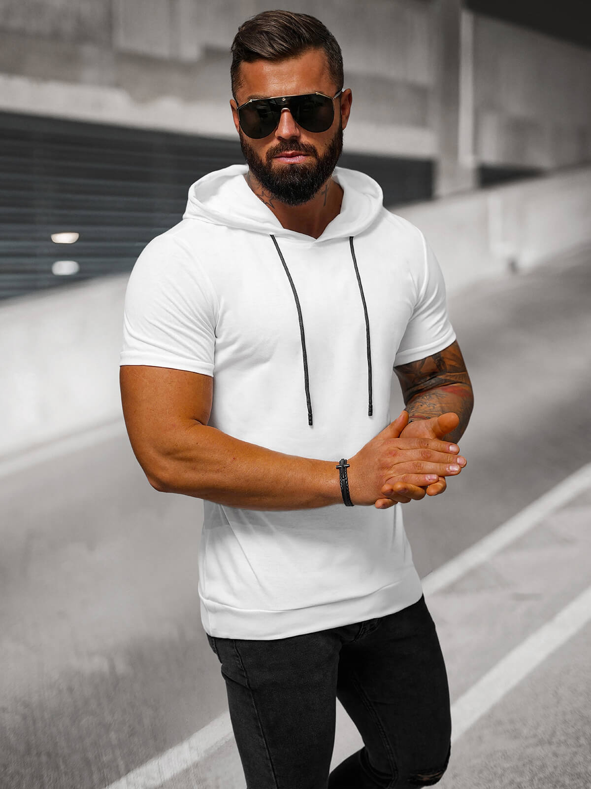 Ανδρικό T-shirt με κουκούλα λευκό OZONEE JS/8T955/1 - άνεση συναντά το στυλ