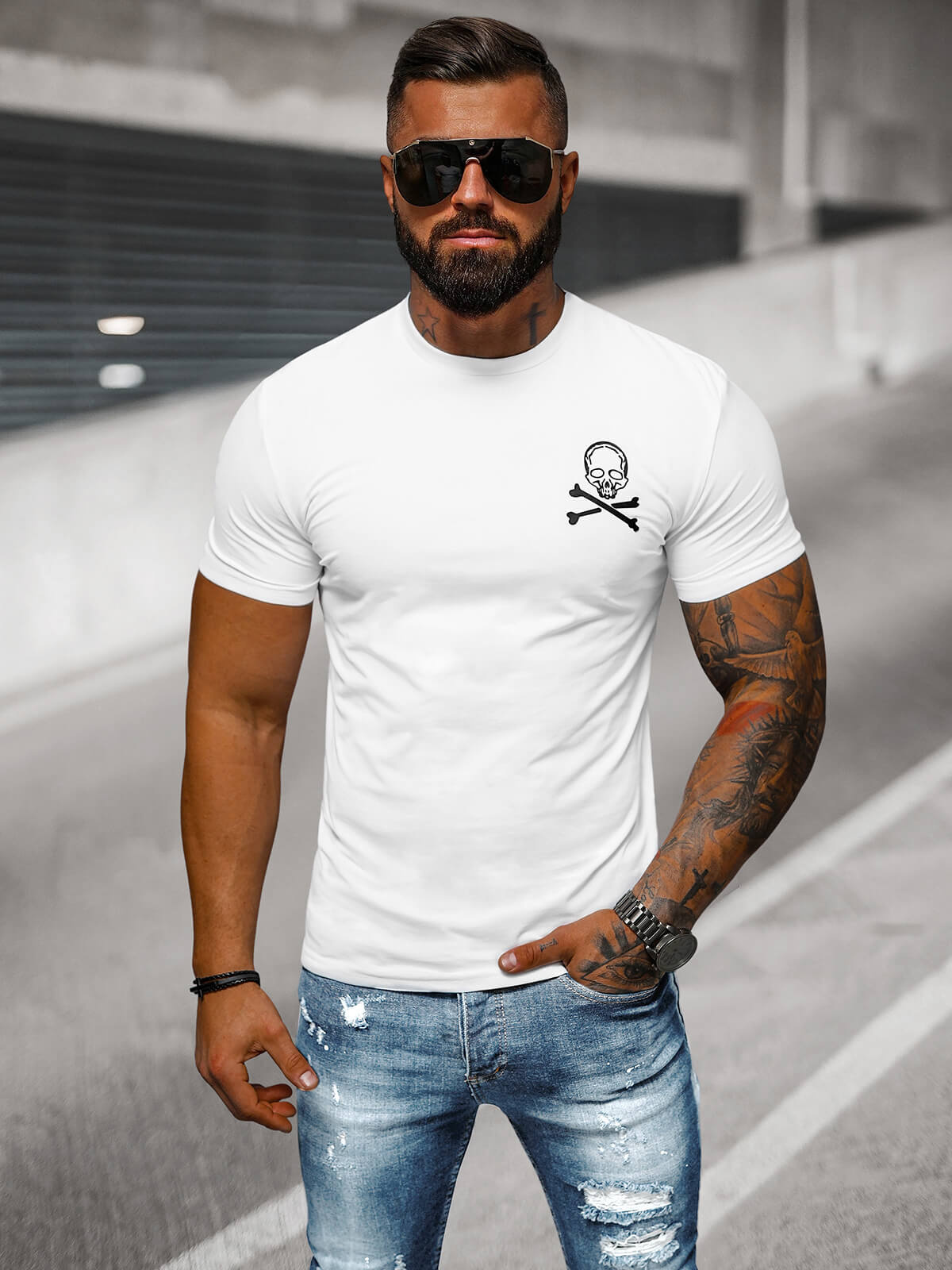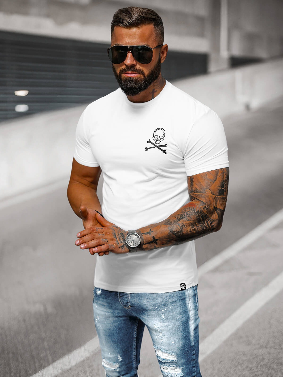 Μοντέρνο ανδρικό slimfit T-shirt λευκό OZONEE NB/MT3066 - μια μοντέρνα προσθήκη στην γκαρνταρόμπα σας