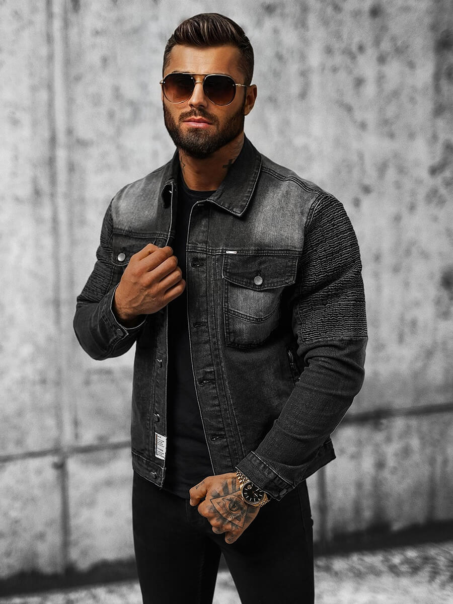 Ανδρικό τζιν μπουφάν mαύρος OZONEE NB/MJ521N