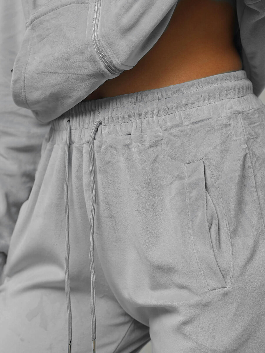 Γυναικείο βελούδινο σετ φόρμας Γκρί OZONEE JS/8C1176/2Z