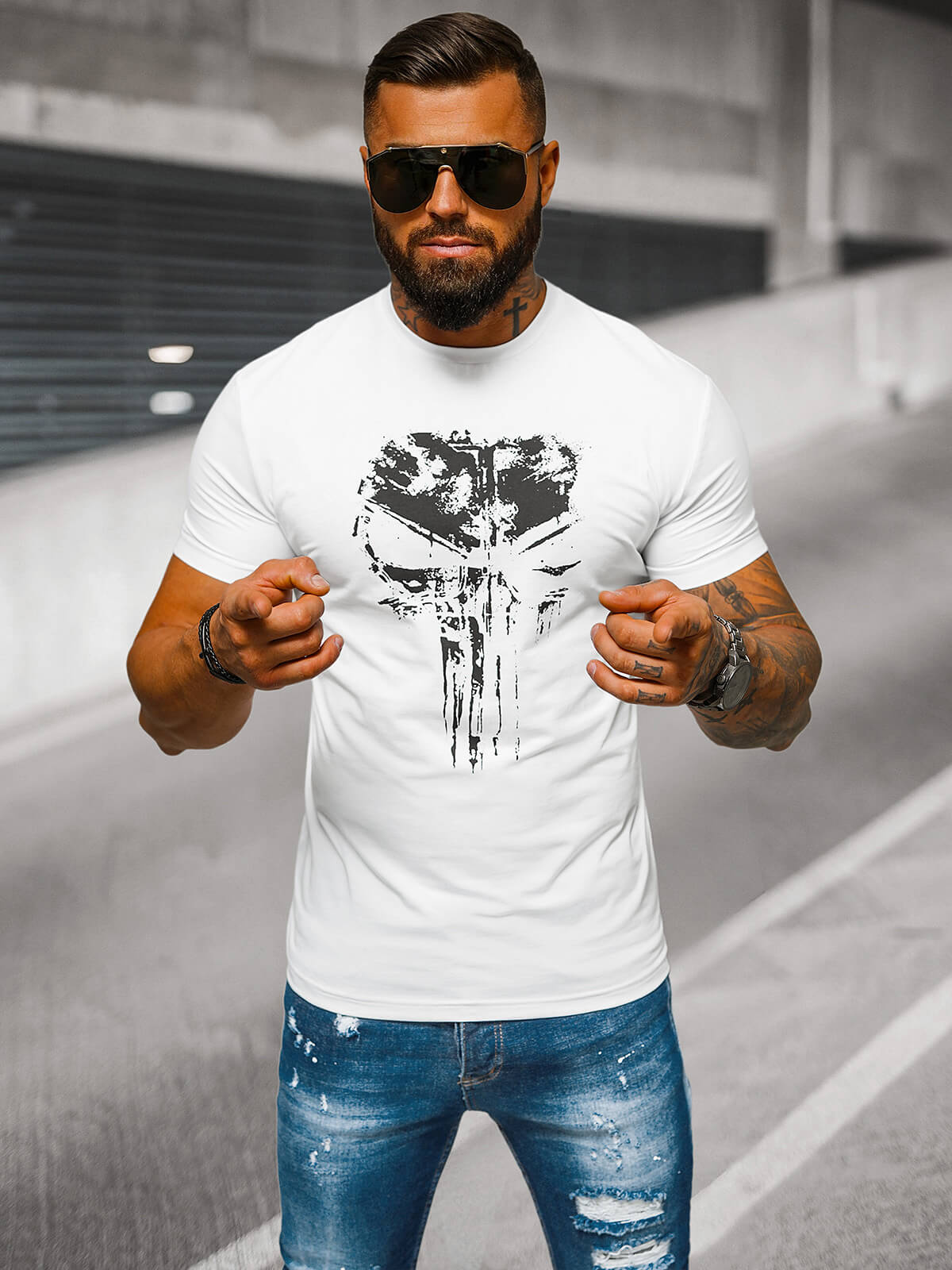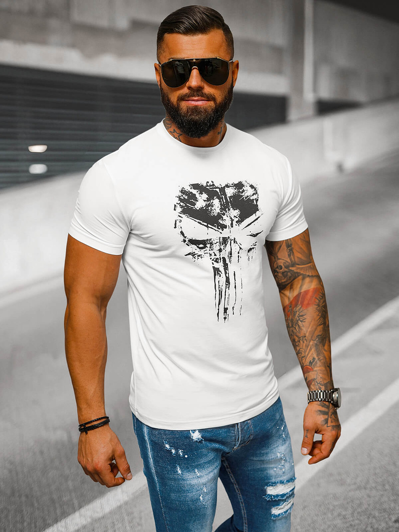 Μοντέρνο και κομψό ανδρικό t-shirt στενής εφαρμογής λευκό OZONEE NB/MT3045Z