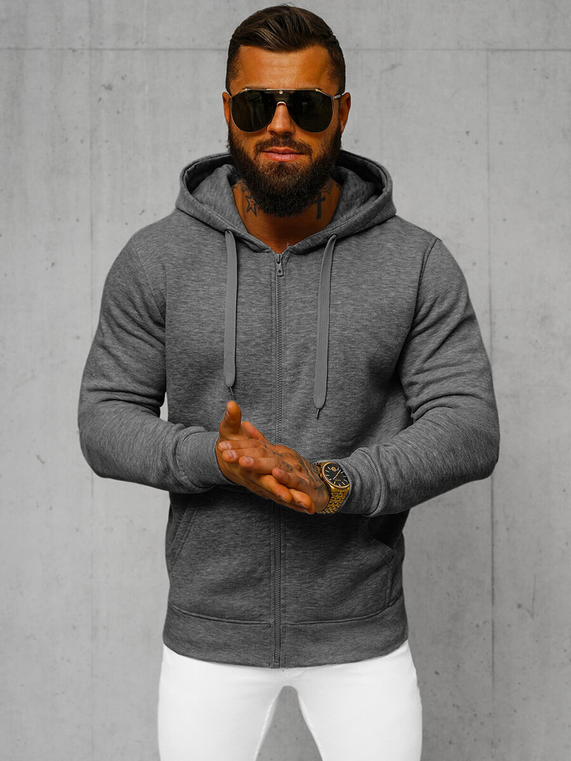 Μοναδικό ανδρικό φούτερ με κουκούλα ξεκούμπωτο σκούρο γκρι OZONEE JS/2008Z
