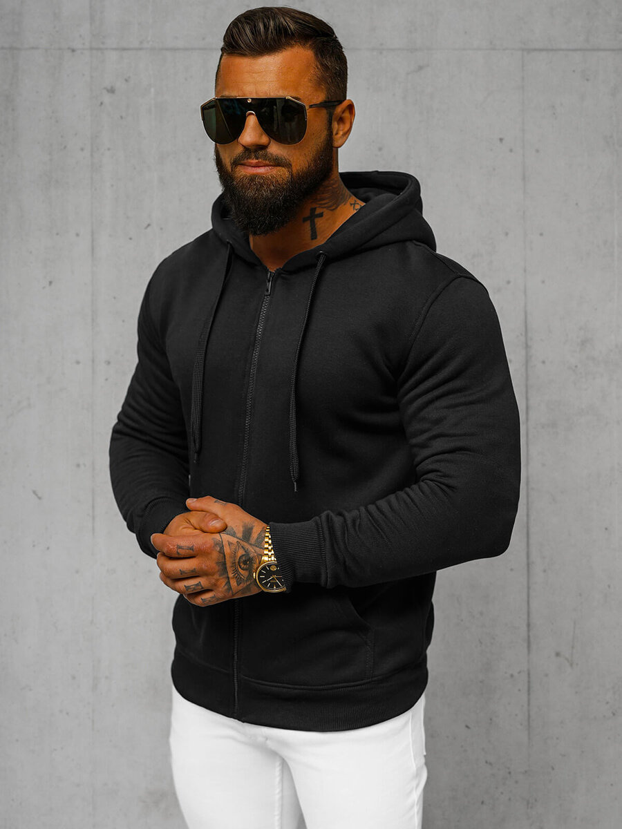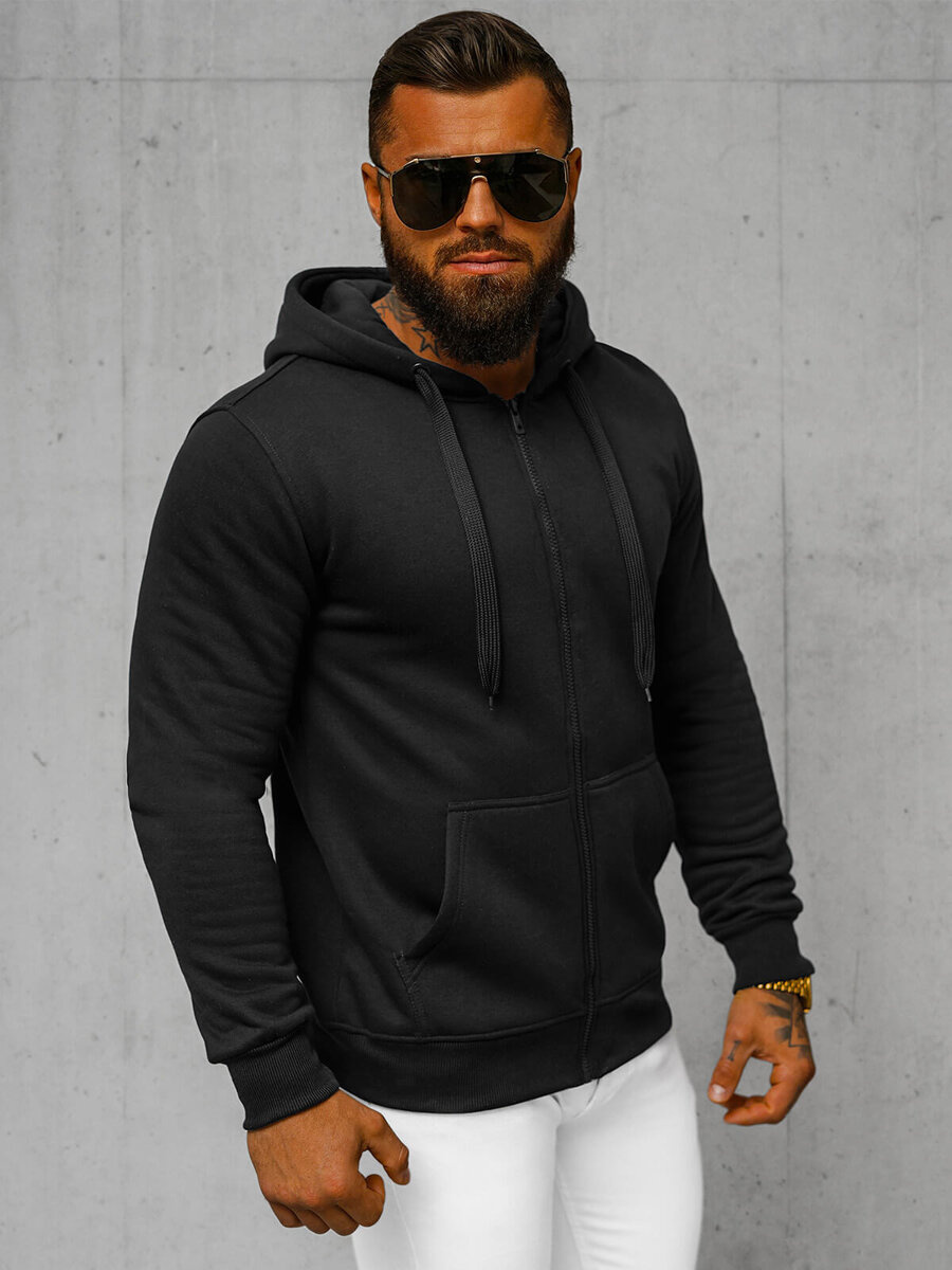 Ανδρικό μοντέρνο φούτερ με κουκούλα και φερμουάρ μαύρο OZONEE JS/2008Z