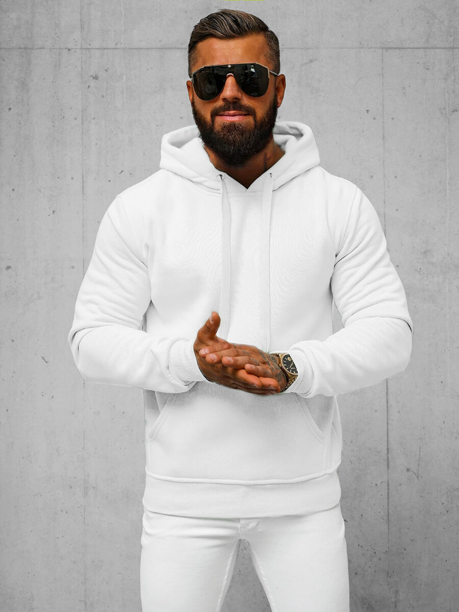Κομψό και άνετο ανδρικό φούτερ με κουκούλα λευκό OZONEE JS/2009Z