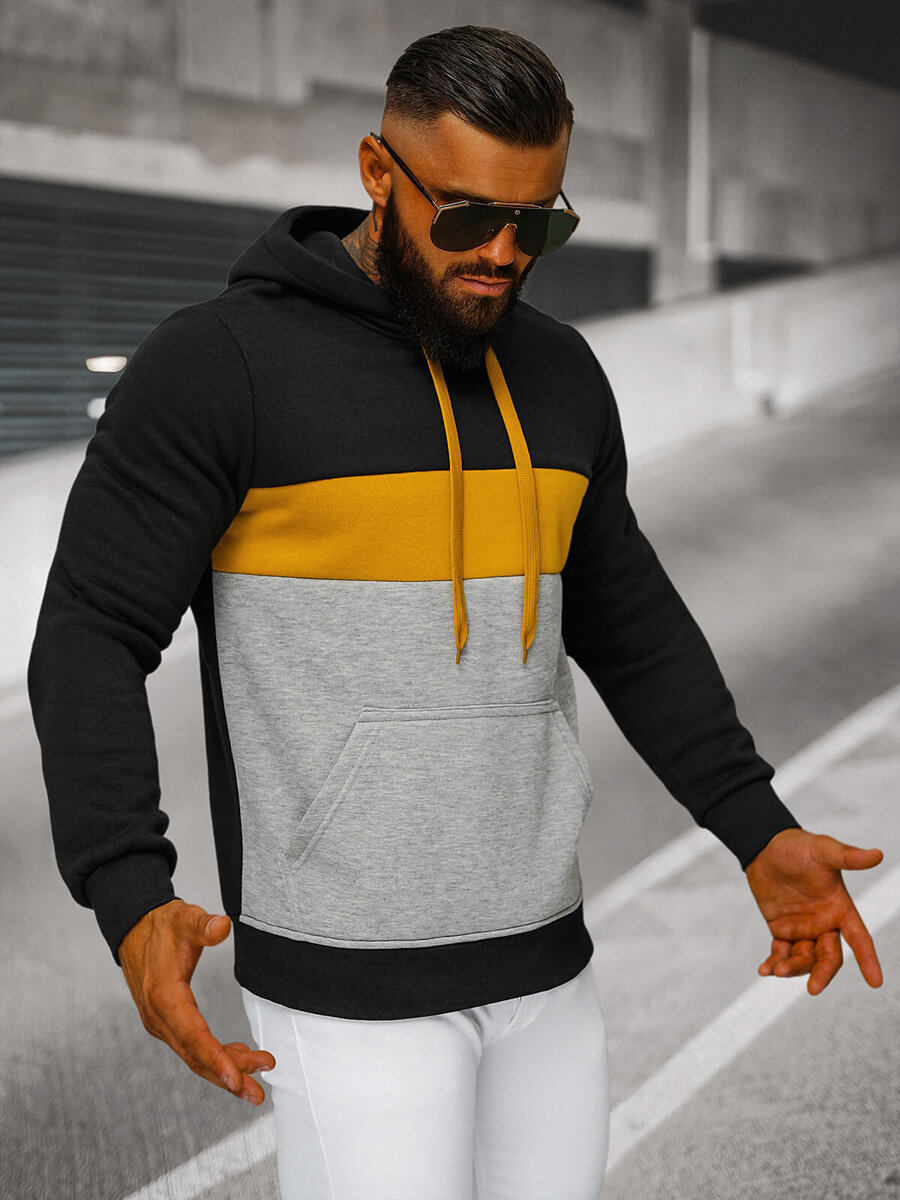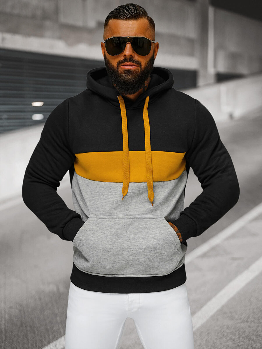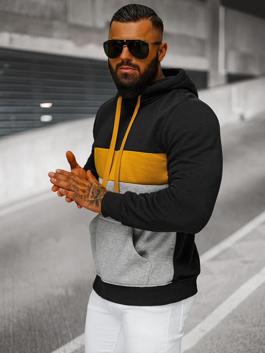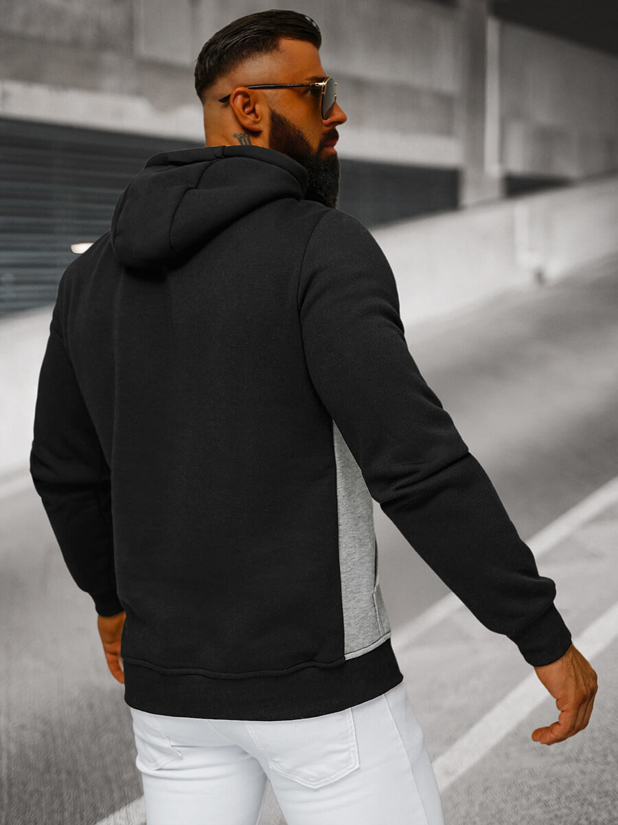 Ανδρικό μαύρο φούτερ με κουκούλα OZONEE JS/8B1320/3 - άνετο καθημερινό στυλ