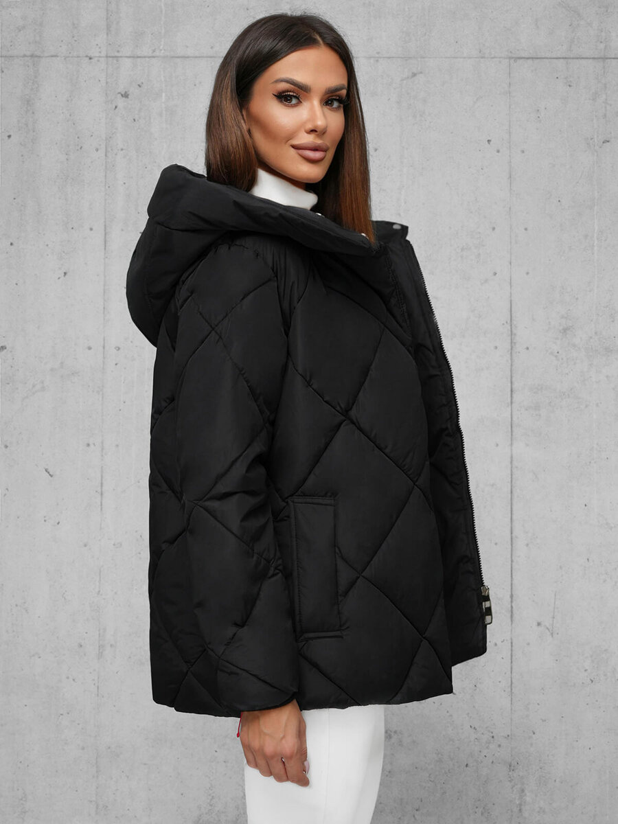 Μοντέρνο και κομψό γυναικείο χειμερινό καπιτονέ μπουφάν μαύρο OZONEE JS/5M3175/392