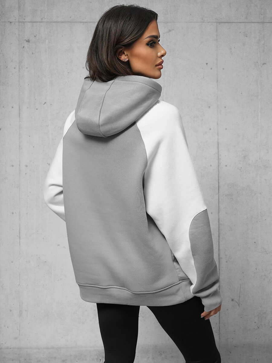 Εξαιρετικά κομψό oversize γκρι φούτερ με κουκούλα OZONEE O/SWE23037Z