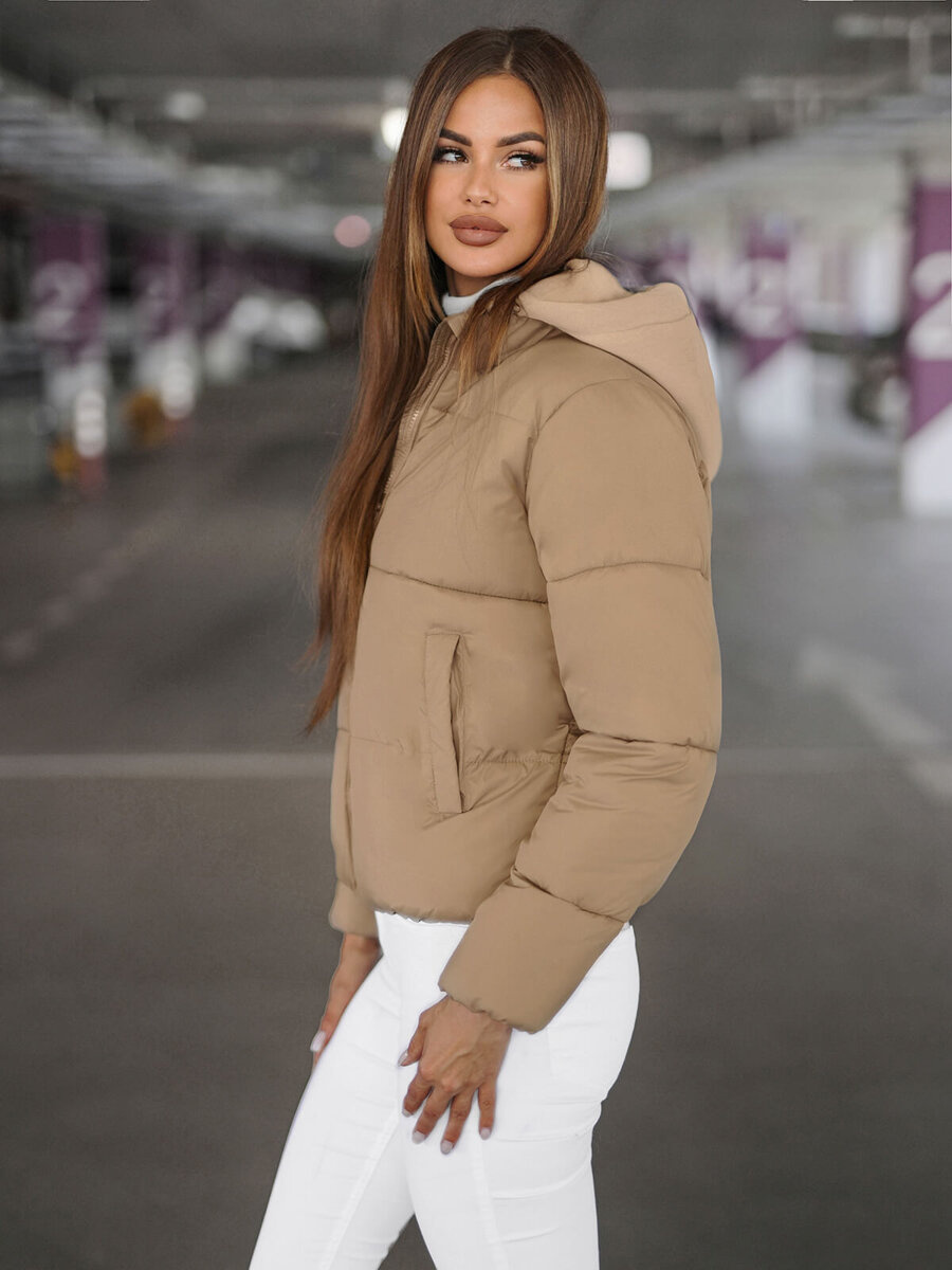 Εξαιρετικό στυλ και άνεση σε ένα - OZONEE γυναικείο χειμερινό μπουφάν με καπιτονέ ανοιχτό μπεζ JS/16M9187/158