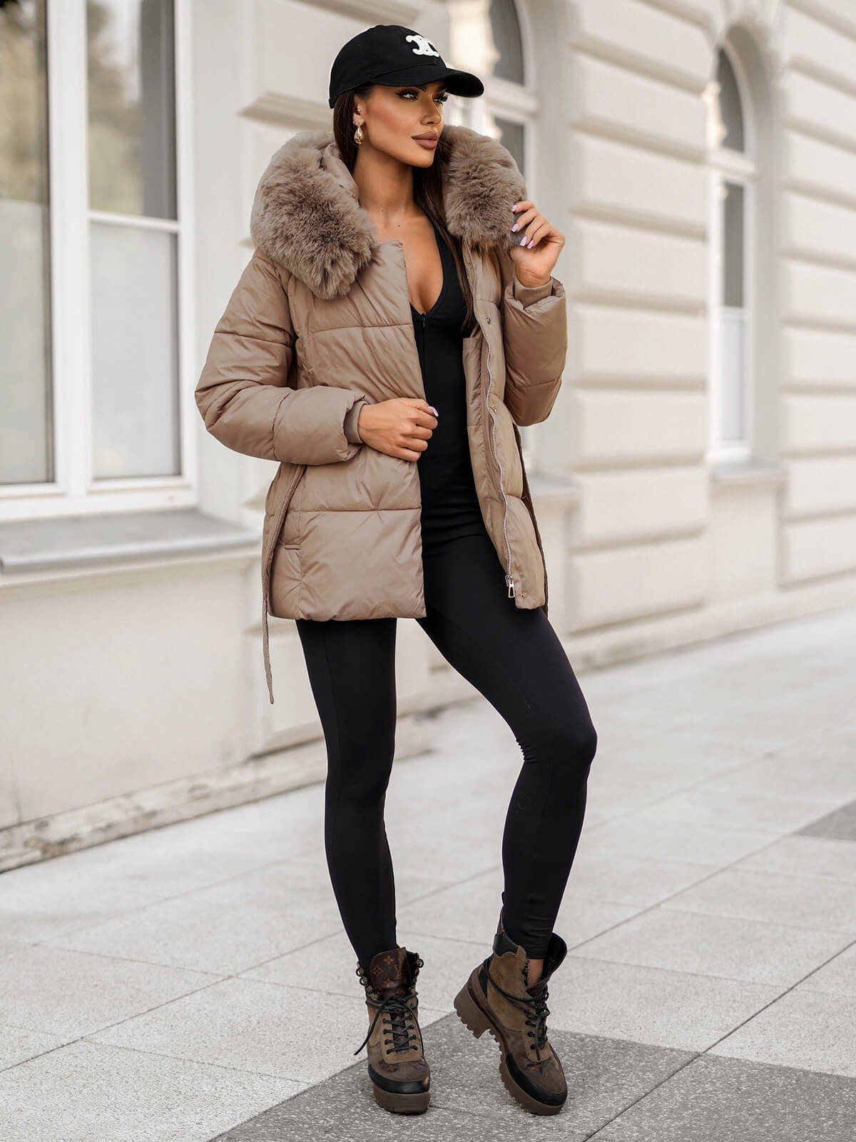 Γυναικείο μπουφάν μπεζ OZONEE JS/16M9206/62