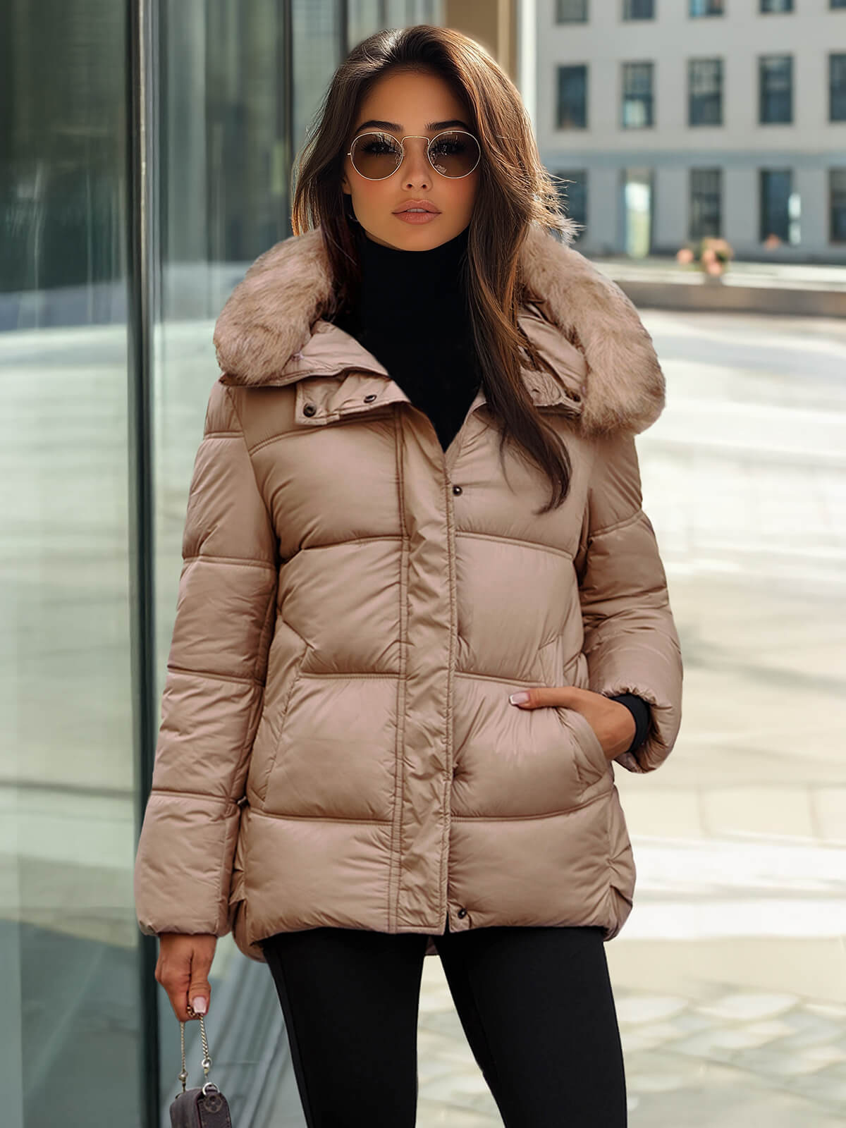Γυναικείο χειμερινό μπουφάν kαμήλα OZONEE JS/5M3256/84Z