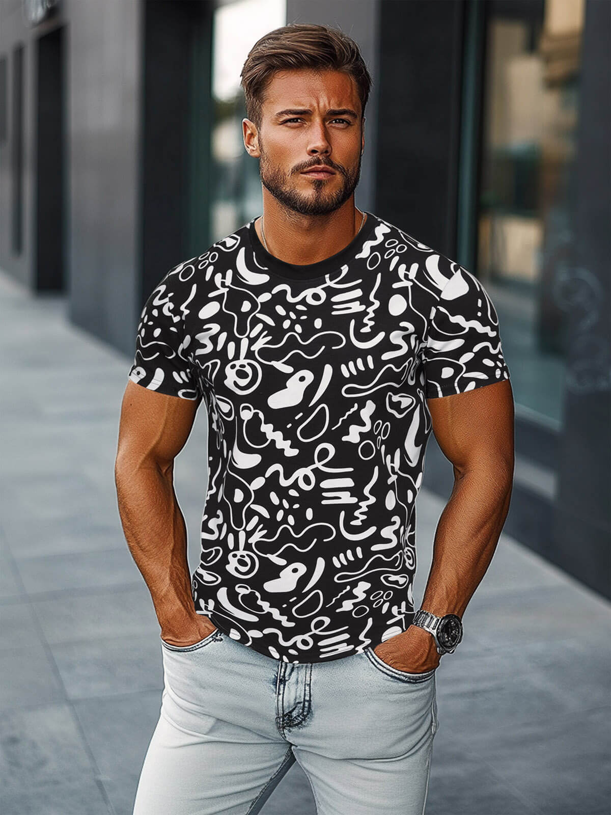 Ανδρική casual κομψότητα - Ανδρικό μαύρο OZONEE T-shirt JS/8T1216/3