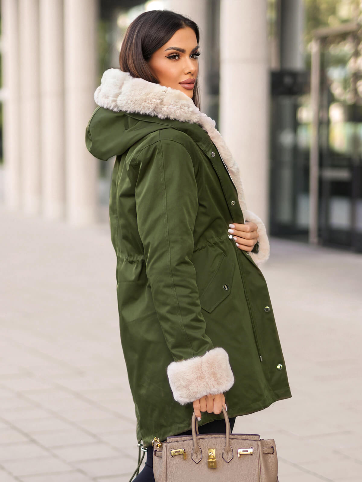 Στυλ και άνεση σε ένα - Γυναικείο χειμερινό μπουφάν με γούνα πράσινο OZONEE JS/M763/136Z