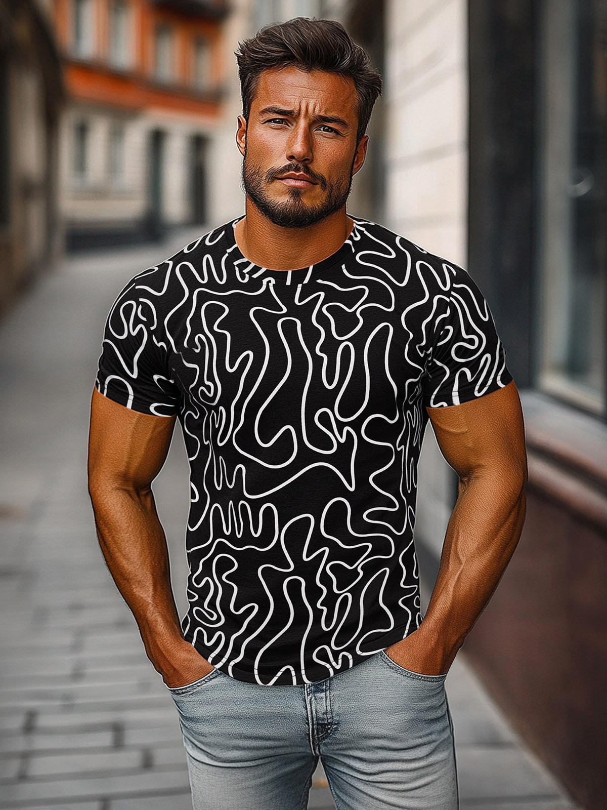 Εξαιρετικά κομψό μαύρο ανδρικό T-shirt OZONEE JS/8T1198/3