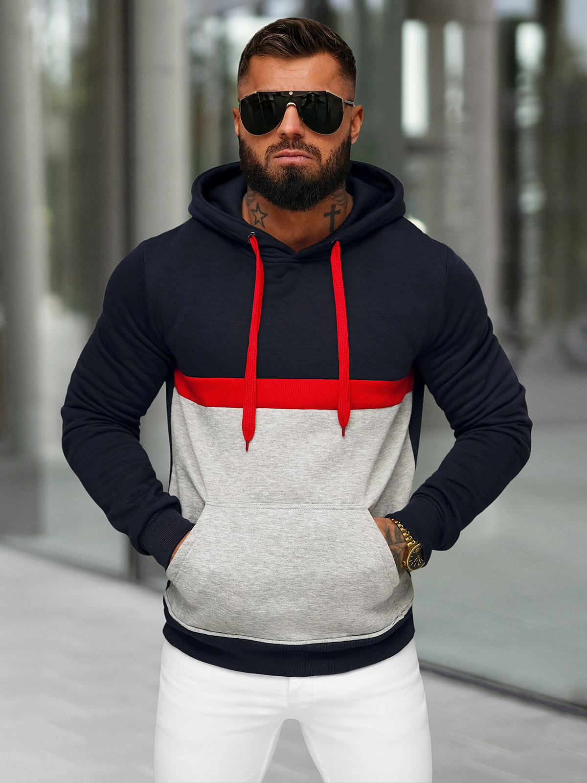 Το ανδρικό φούτερ με κουκούλα που παρουσιάζεται από την τελευταία συλλογή της OZONEE είναι ένας μοναδικός συνδυασμός στυλ, άνεσης και λειτουργικότητας. Φοριέται πάνω από το κεφάλι, με πρακτική κουκούλα, και αποτελεί την ιδανική λύση για τις πιο κρύες μέρες. υλικόΟι αντίθετες αρθρώσεις u προσθέτουν χαρακτήρα και το κάνουν να ξεχωρίζει. Το στρίφωμα και τα μανίκια με ραβδώσεις εξασφαλίζουν τέλεια εφαρμογή, ενώ η τσέπη καγκουρό είναι μια πρακτική προσθήκη που θα είναι πάντα χρήσιμη.
