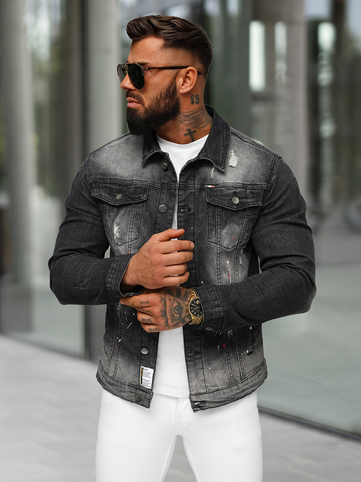 Ανδρικό τζιν μπουφάν μαύρο OZONEE NB/MJ542N