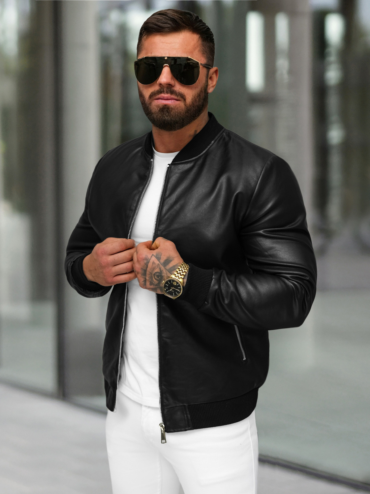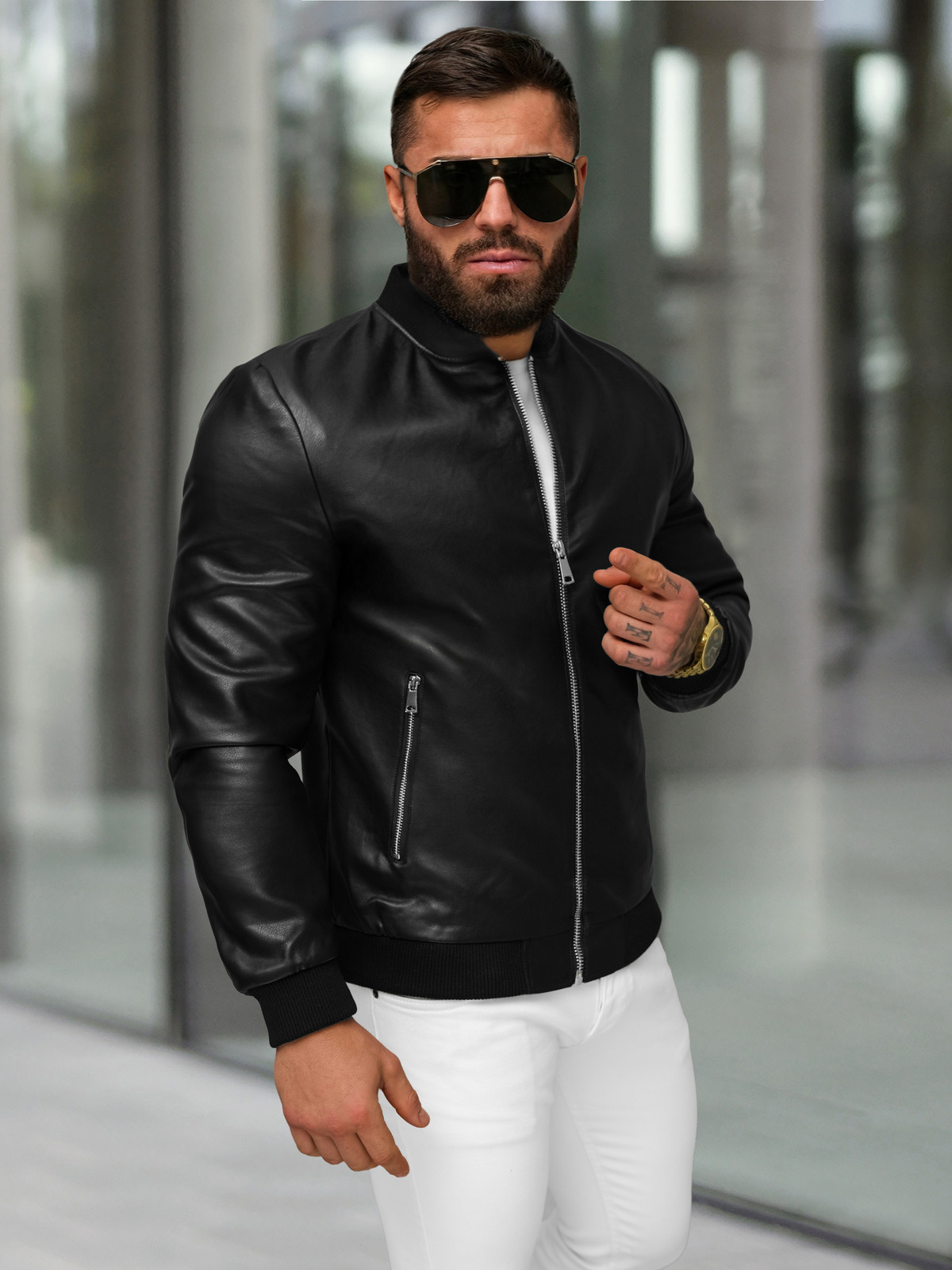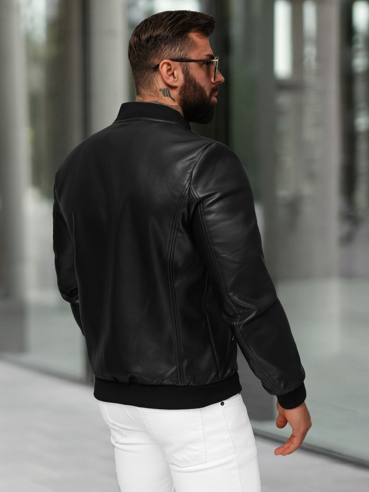 Ανδρικό δερμάτινο μπουφάν μαύρο OZONEE JS/11Z8107
