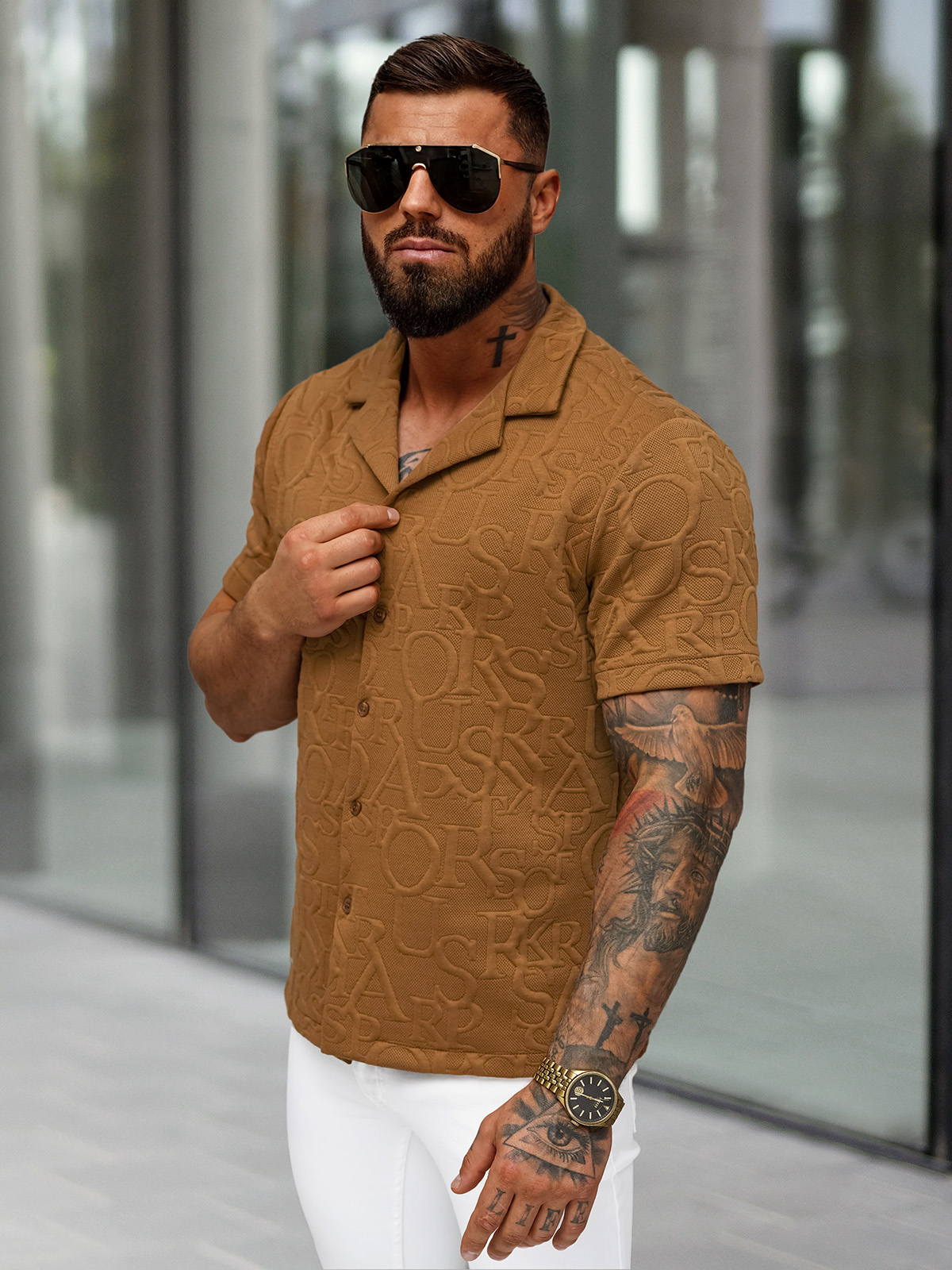 Ανδρικό πουκάμισο με κοντό μανίκι καφέ OZONEE O/B2256