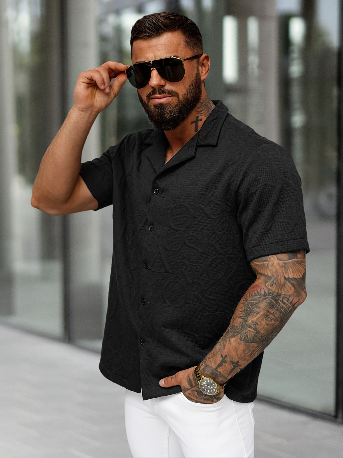 Ανδρικό πουκάμισο με κοντό μανίκι μαύρο OZONEE O/B2256