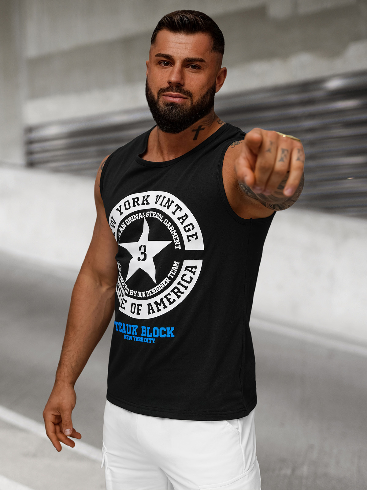 Ανδρικό αμάνικο μπλουζάκι mαύρος OZONEE JS/8B1721/3Z