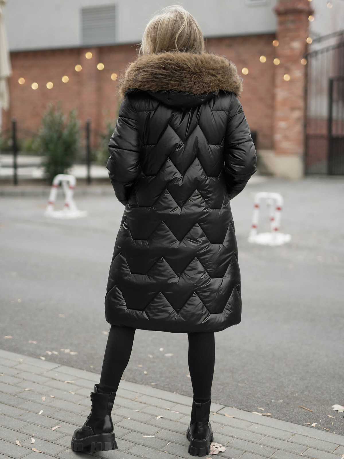- Γυναικείο χειμερινό μπουφάν μέχρι το γόνατο με φερμουάρ και μοντέρνο καπιτονέ σχέδιο