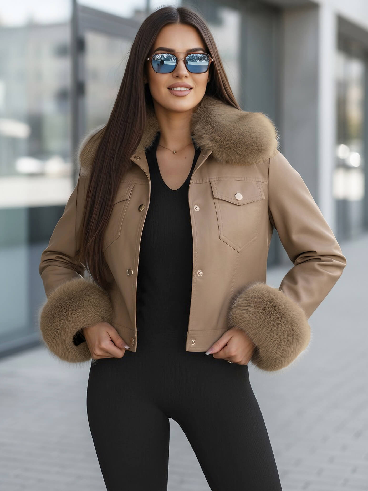 - Γυναικείο μπουφάν από ύφασμα που μιμείται δέρμα
