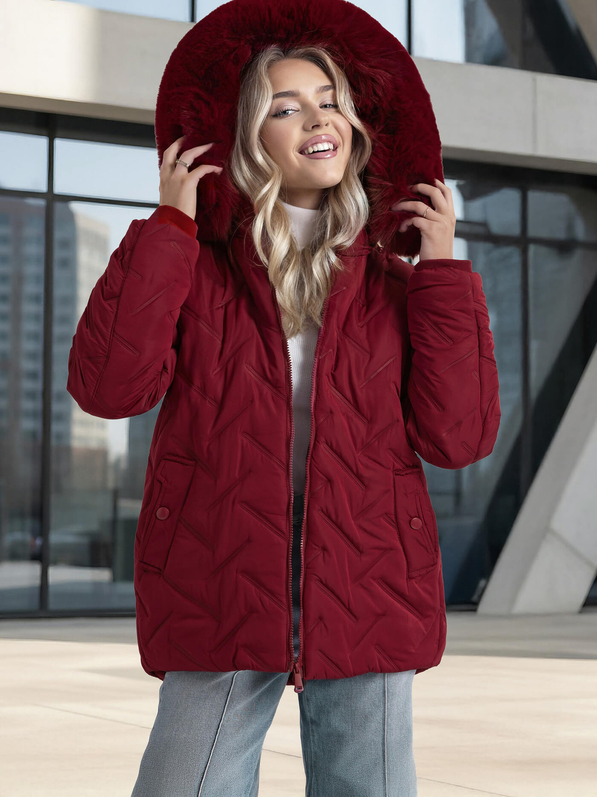 - Γυναικείο χειμερινό μπουφάν με αποσπώμενη κουκούλα και γούνα