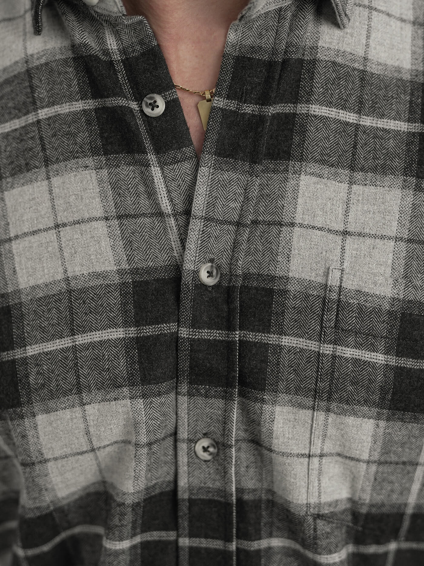 - Μοντέρνο καρό σχέδιο; Γιακάς button-down; Ύφασμα: 50% βαμβάκι, 50% πολυεστέρας; Μοντέλο (183 cm, 80 kg) φοράει μέγεθος L.