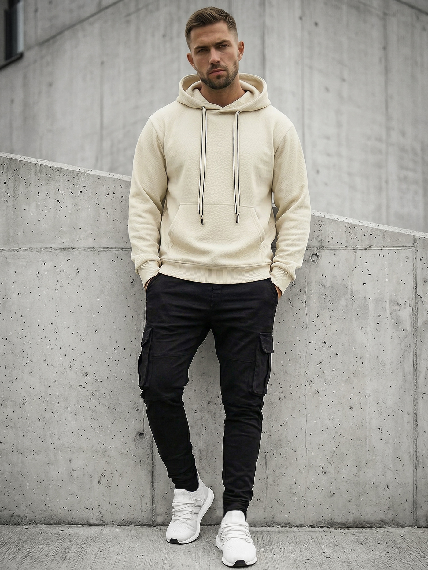 Ανδρικό Φούτερ με Κουκούλα Eκρού OZONEE O/G3065