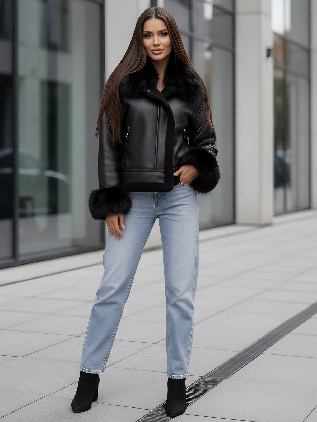 - Γυναικείο δερμάτινο χειμερινό μπουφάν