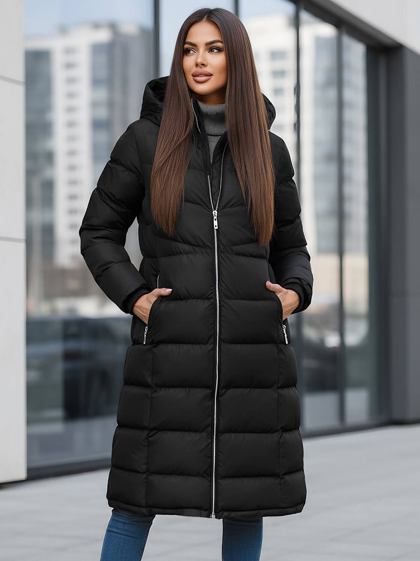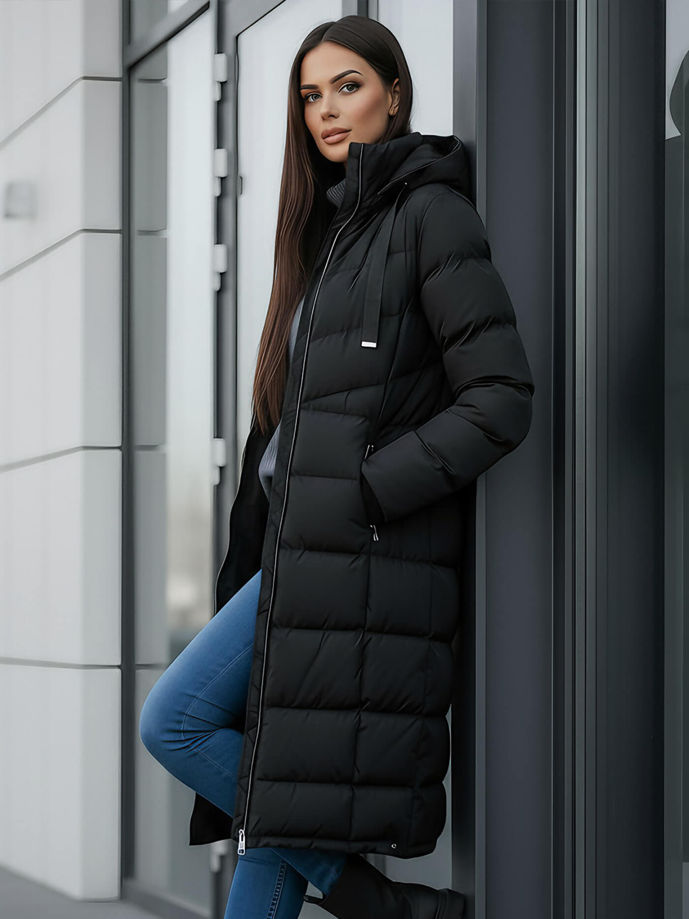 - Μακριό γυναικείο χειμερινό μπουφάν
