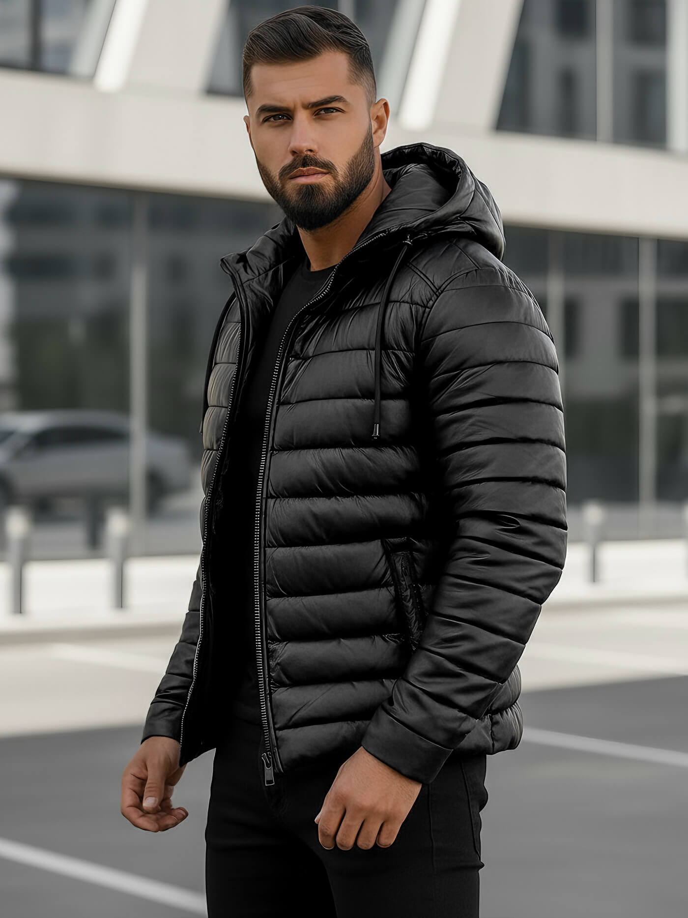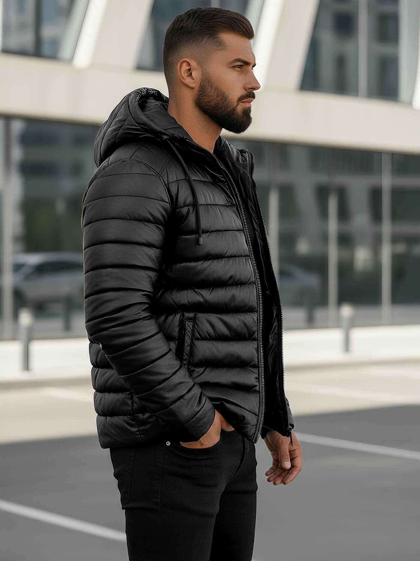 Ανδρικό δερμάτινο μπουφάν μαύρο OZONEE O/11Z8088Z