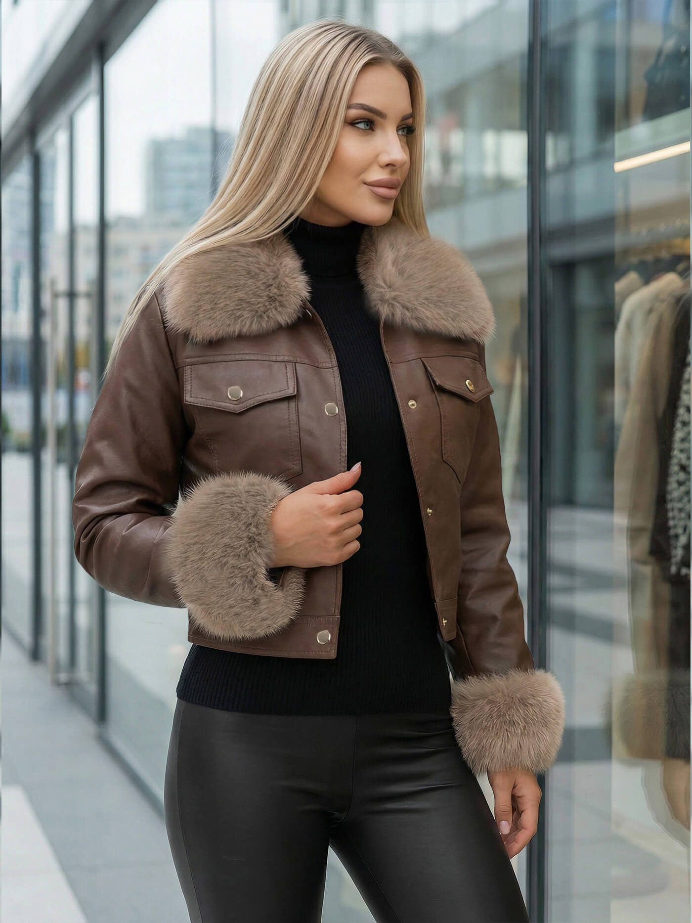 - Γυναικείο μπουφάν από ύφασμα που μιμείται δέρμα