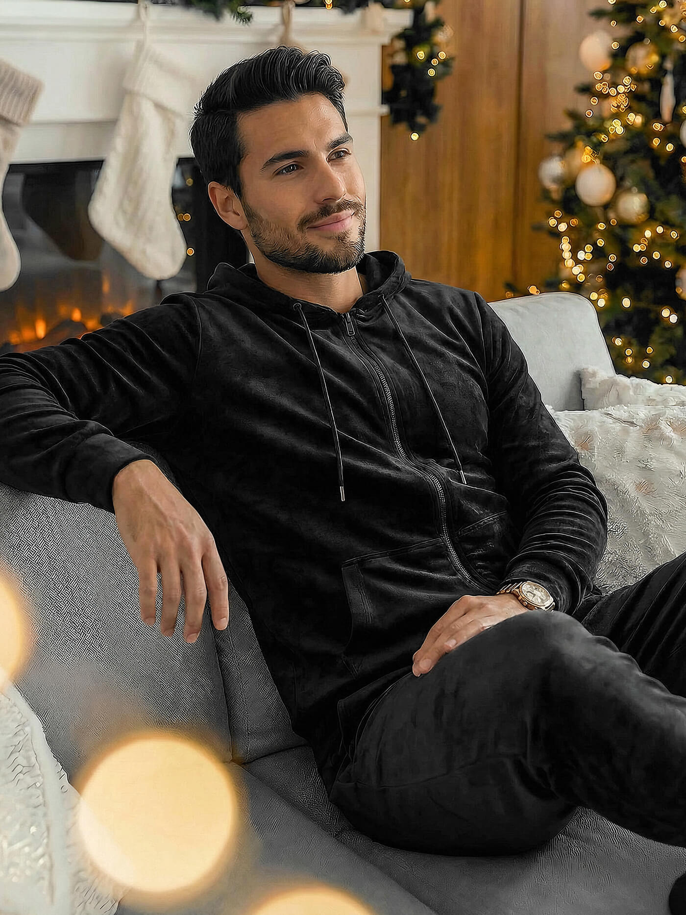 Άνεση και στυλ σε ένα - Ανδρικό βελούδινο σετ φόρμας μαύρο OZONEE JS/8C1169/3
