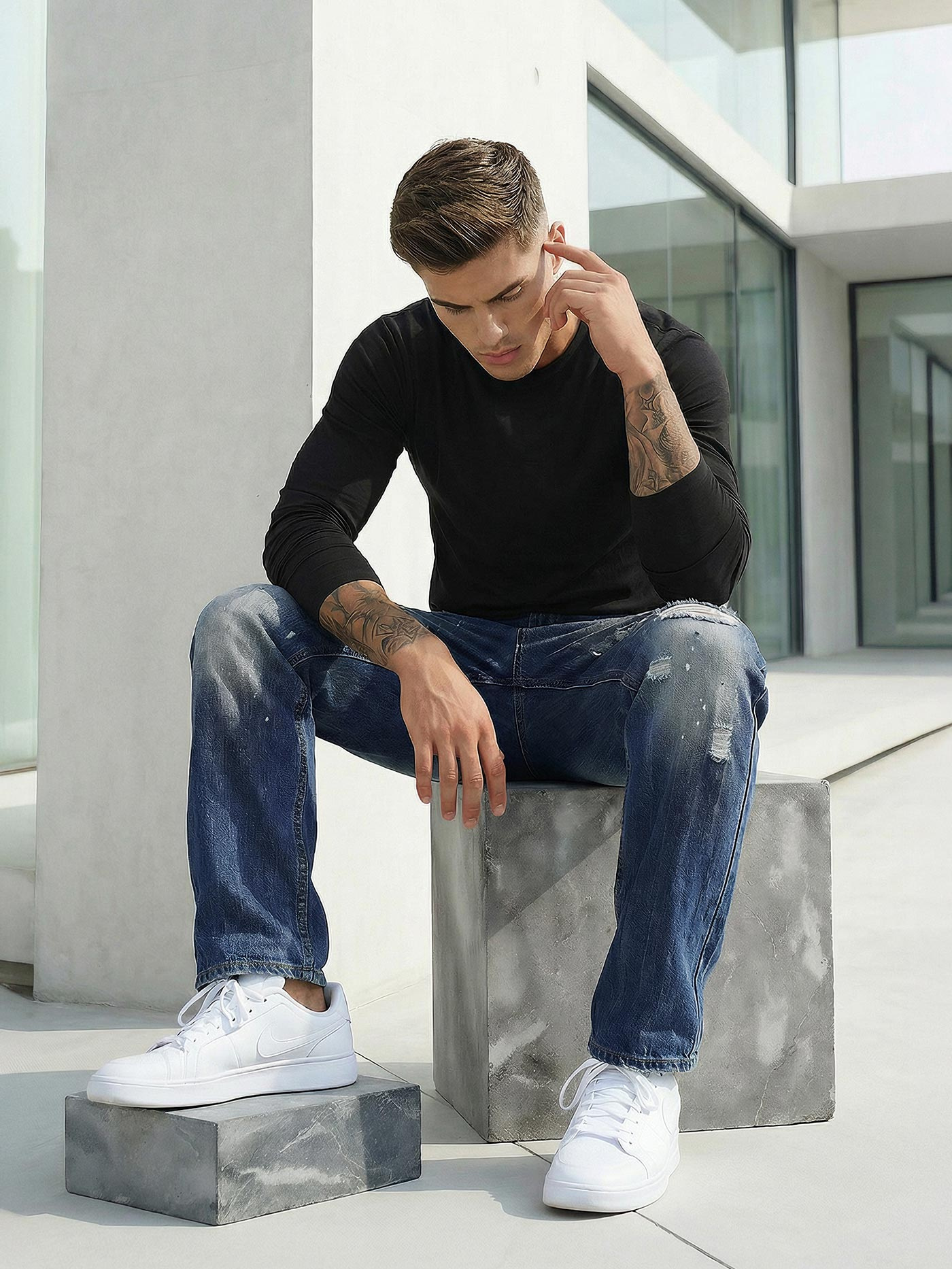 Ανδρικό τζιν παντελόνι μπλε OZONEE O/KK2885Z