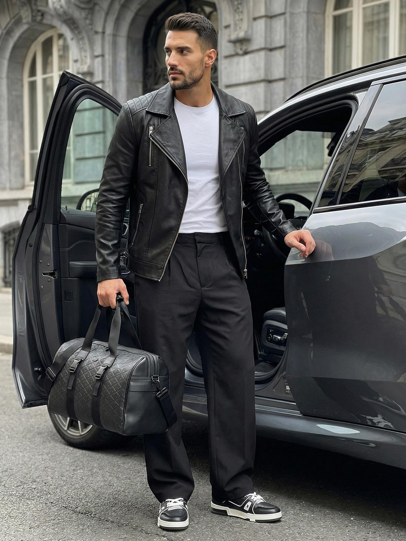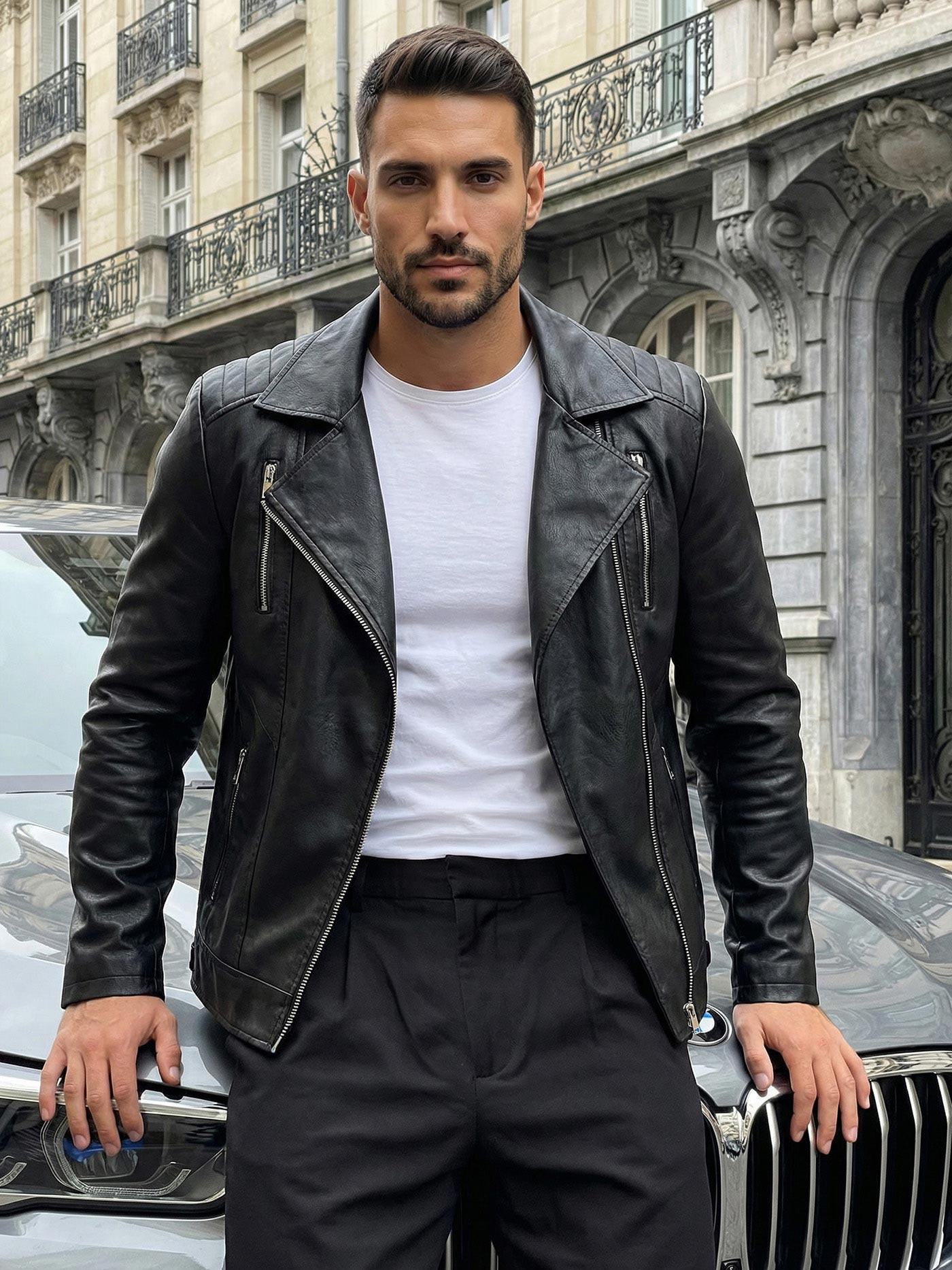 - Ανδρικό μπουφάν με όψη δέρματος