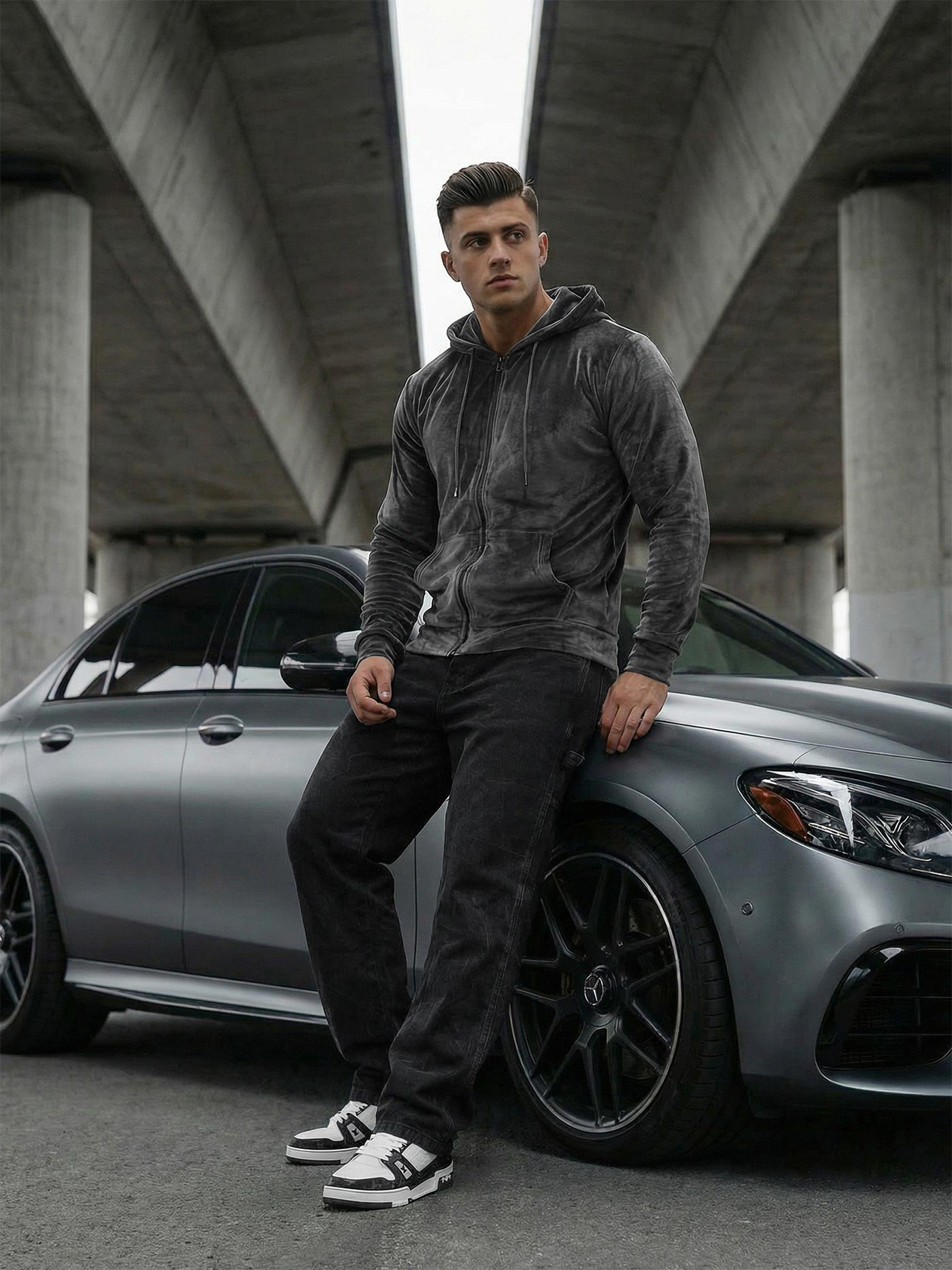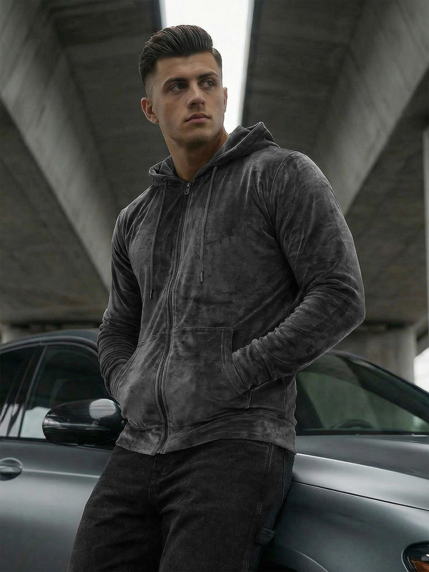 Το ανδρικό φούτερ OZONEE JS/8B1168/6Z με κουκούλα από βελουτέ γραφίτη είναι ένας συνδυασμός άνεσης και μοντέρνου σχεδιασμού. Κατασκευασμένη από την υψηλότερη ποιότητα υλικόów, παρέχει άνεση όλη την ημέρα. Κλείνει με φερμουάρ και διαθέτει κουκούλα που προσθέτει μια μοναδική πινελιά. Το κάτω μέρος και τα μανίκια που τελειώνουν με ριμπ στρίφωμα τονίζουν το σπορ στυλ του.